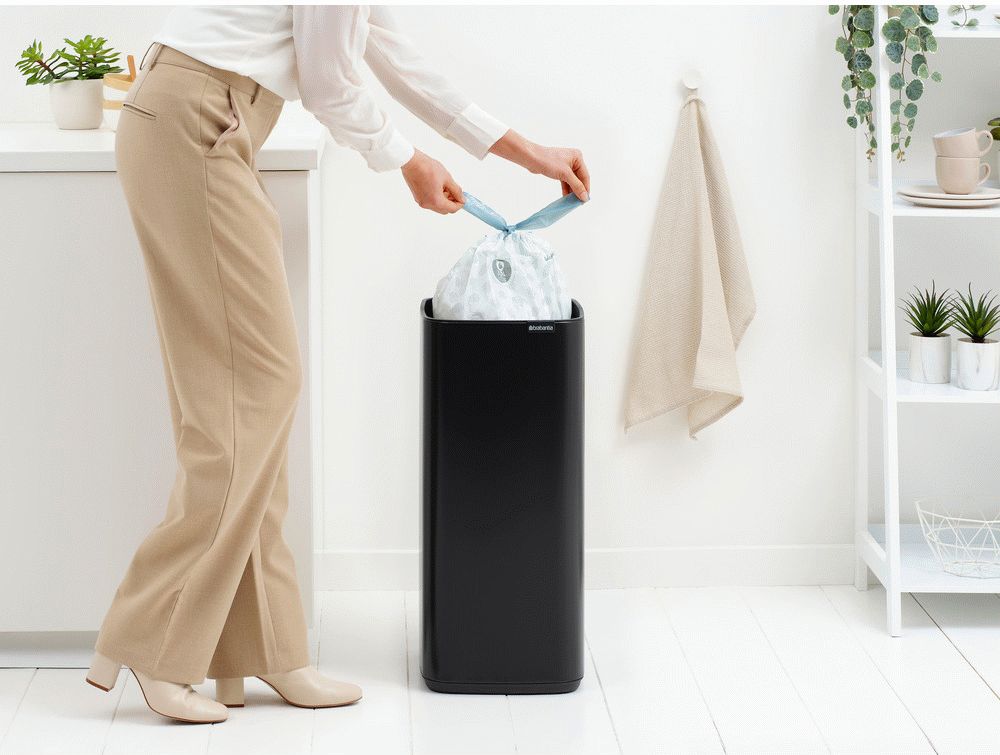 Brabantia Bo Touch Affaldsspand 30 L i mat sort beviser, at funktionalitet og elegance kan gå hånd i hånd i moderne hjemmeindretning. Denne stilfulde affaldsspand fra det anerkendte danske brand Brabantia forener smart design med bæredygtig tænkning og praktisk funktionalitet.Med sin slanke rektangulære form på 30 liter er Bo Touch designet til at optimere pladsen i dit hjem. Den passer perfekt op ad væggen eller diskret i et hjørne, hvilket gør den ideel til både køkkener, badeværelser og kontorer. Den elegante mat sorte finish i stål komplementerer enhver indretningsstil og tilfører et moderne touch til rummet.