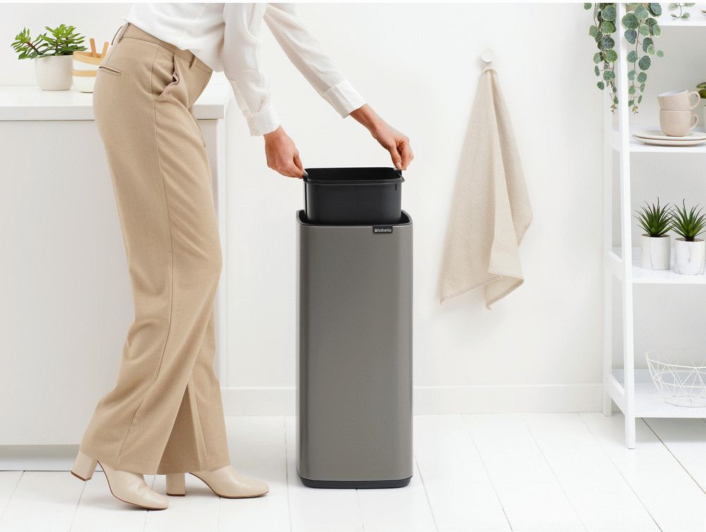 Brabantia har designet denne affaldsspand med både brugervenlighed og bæredygtighed for øje. Den aftagelige indvendige spand af 100% genanvendt plastik gør rengøring til en enkel opgave, mens det integrerede transportgreb sikrer nem flytning mellem rum. Den bløde skridsikre base beskytter gulvet mod ridser og sikrer, at affaldsspanden står stabilt.