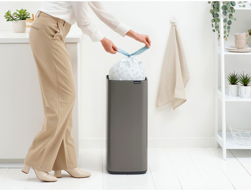Brabantia Bo Touch Affaldsspand 30 L i Platinum bringer elegance og funktionalitet sammen i et gennemtænkt design, der passer perfekt ind i det moderne hjem. Med sin sofistikerede platinumfarve og slanke rektangulære form bliver denne affaldsspand et stilfuldt element i køkkenet eller ethvert andet rum, hvor du har brug for praktisk affaldssortering.Den innovative soft-touch åbning gør daglig brug til en smertefri oplevelse - et enkelt tryk med hånden er alt, hvad der skal til for at åbne låget. Dette system sikrer både hygiejne og bekvemmelighed, mens den store åbning forhindrer spild og gør det nemt at smide affald væk.
