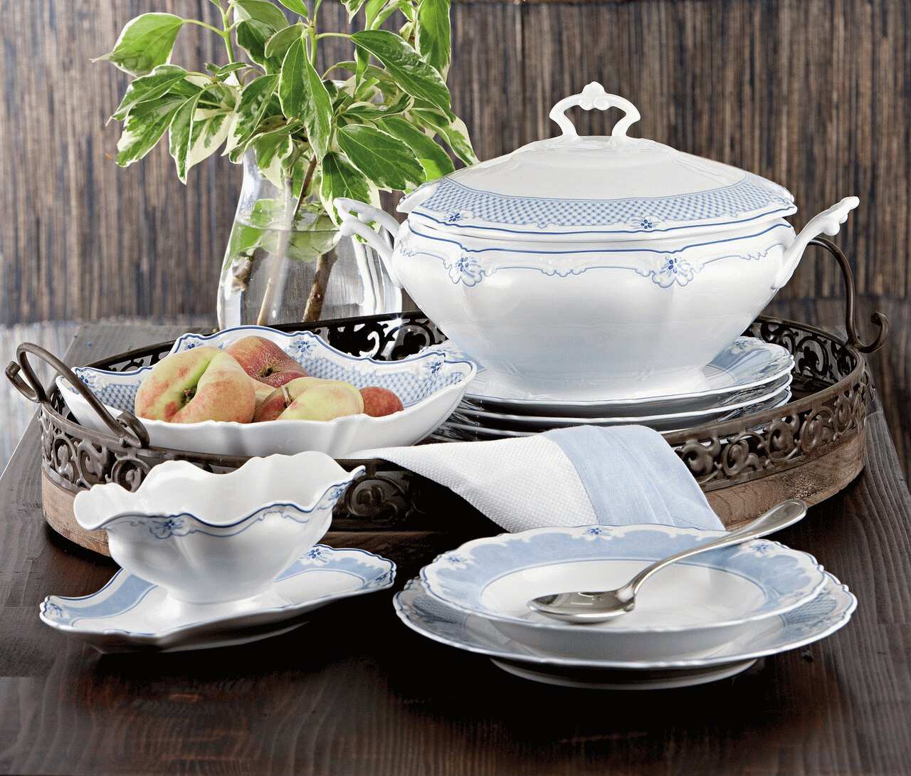 Baronesse Estelle Blue-serien kan nemt kombineres med andet porcelæn fra samme kollektion, hvilket giver dig mulighed for at skabe et sammenhængende og stilfuldt borddækning. Det lyseblå mønster fungerer som et smukt bindeleddet mellem klassisk elegance og moderne bordkultur.