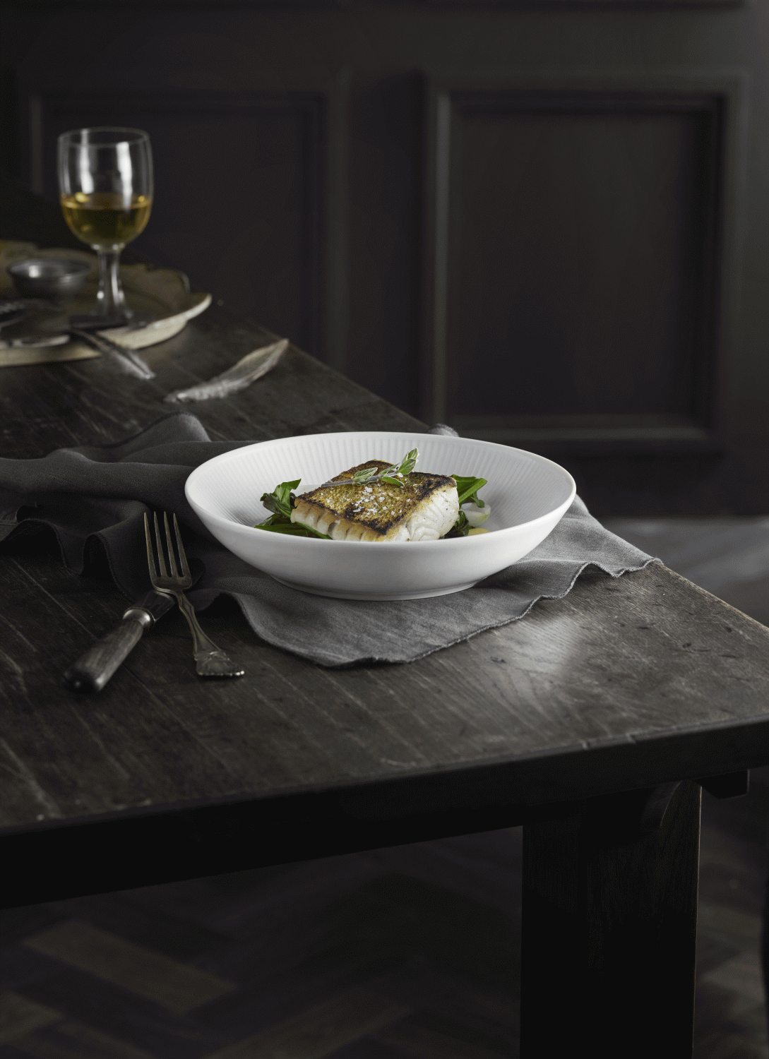 Plissé-serien er internationalt anerkendt som indbegrebet af diskret, fransk elegance. Den hvide porcelæn udstråler renhed og tidløshed, hvilket gør tallerkenen til et alsidigt element i ethvert køkken - perfekt til både hverdagsmåltider og særlige anledninger.
