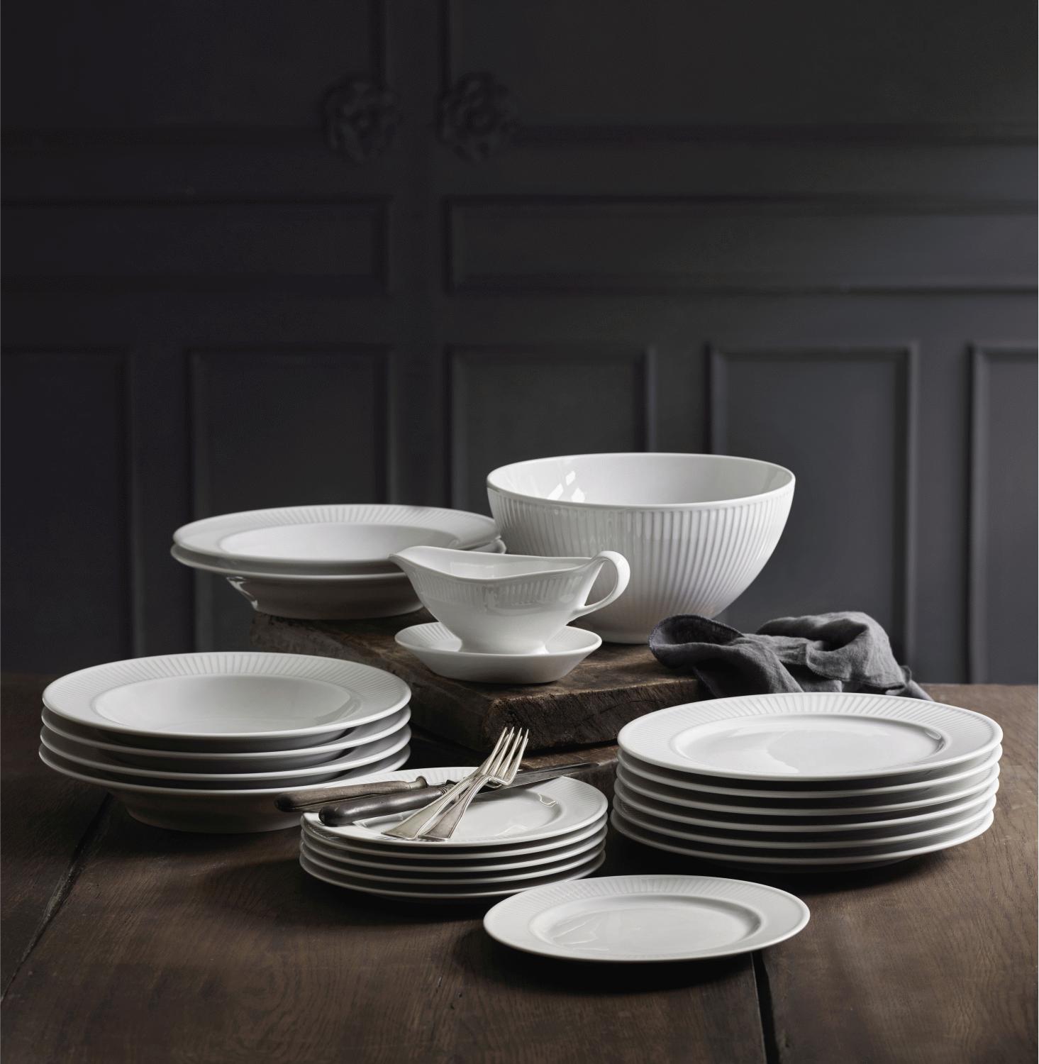 Det hvide porcelæn fremhæver maden på smukkeste vis og passer harmonisk ind i enhver bordopdækning, hvad enten du foretrækker et minimalistisk udtryk eller ønsker at kombinere med andre dele fra Plissé-serien for et komplet og sammenhængende look.