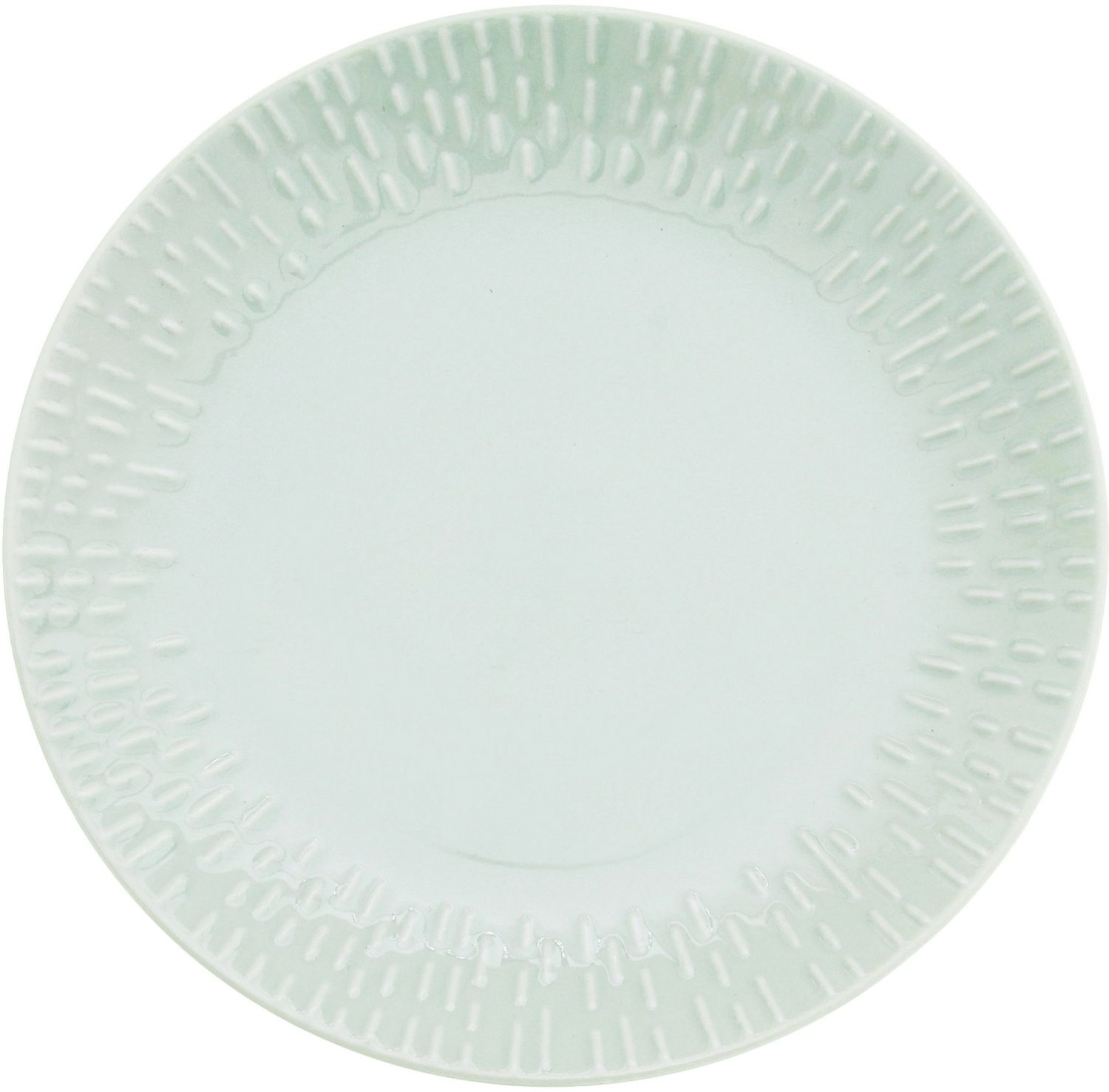 - Lysegrøn tallerken i porcelæn med unikt relief-mønster