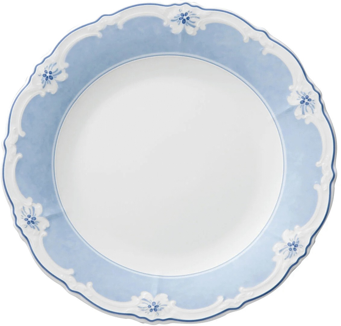Hutschenreuther Baronesse Estelle Blue bringer en romantisk stemning til bordet med sin elegante lyseblå dekor. Denne klassiske tallerken i porcelæn kombinerer tidløst design med funktionel elegance, perfekt til både daglig brug og festlige lejligheder.Baronesse-serien fra Hutschenreuther har siden introduktionen i 1999 været et yndet valg for dem, der sætter pris på raffineret borddækning. Den lyseblå Estelle-dekor skaber en blid og indbydende atmosfære, der løfter enhver servering. Porcelænet er fremstillet med den høje kvalitet og det omhyggelige håndværk, som Hutschenreuther er kendt for.