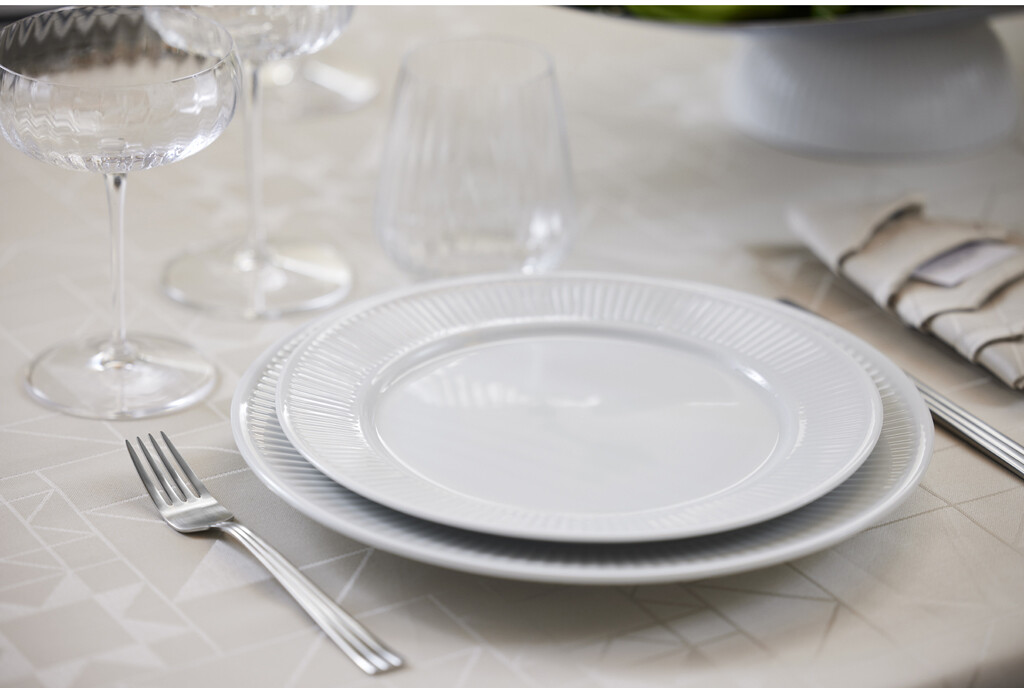 Størrelsen på 28 cm er velegnet som middagstallerken.Enkelt, elegant og klassisk. Plissé er kendt for sine plisserede linjer og tidløse stil, der er skabt ud fra nogle af Pillivuyts tidlige støbeforme fra begyndelsen af 1900-tallet. Plissé er med sin fine plissering kendt verden over som indbegrebet af diskret, fransk elegance.
