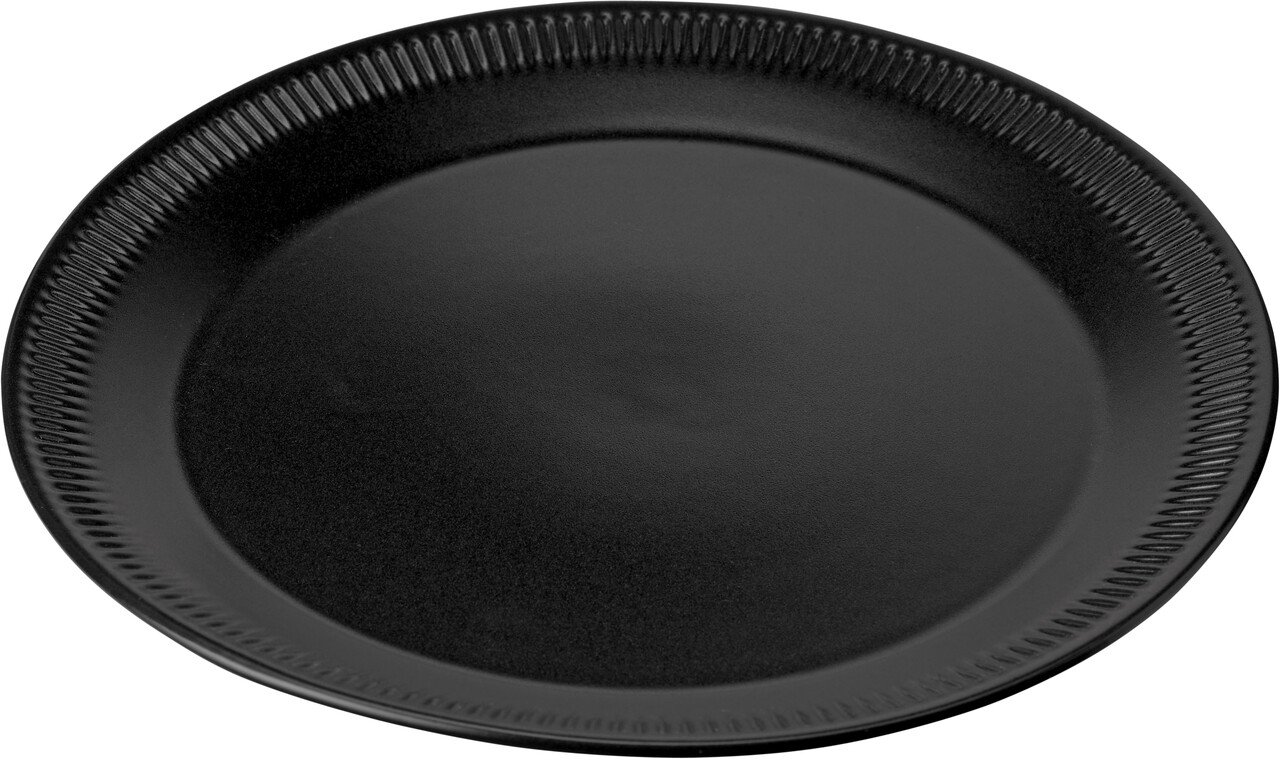 Knabstrup Keramik Tallerken 27cm, SortKnabstrup stellet var det første stentøjsstel der blev produceret på Knabstrup Keramik. Det blev produceret på fabrikken i perioden 1966-1972. Stellet er stilrent med en elegant riflet kant og en silkemat sort glasur. Knabstrup stellet er formgivet af Johannes Hansen der blev uddannet ved Kunstakademiet i København i 1926 og har designet mange af Knabstrup Keramiks mest populære produkter igennem tiden. Johannes Hansen var kunstnerisk leder på Knabstrup Keramik fra 1953-1970, og med hans skarpe sans for smukke linjer skiftede fabrikken fokus fra dekoration af produkterne over på formgivning, der var hans store passion.