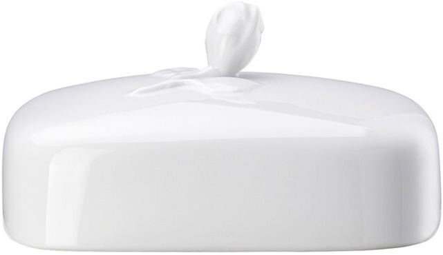 Låget er fremstillet i fineste porcelæn, hvilket sikrer både holdbarhed og en glat, lækker overflade. Den rektangulære form gør det praktisk og nemt at håndtere, mens dimensionerne er omhyggeligt tilpasset til at dække smørboksen perfekt. Med en længde på 15 cm og en bredde på 11,3 cm passer låget til standardsmørbokse og sikrer optimal opbevaring.