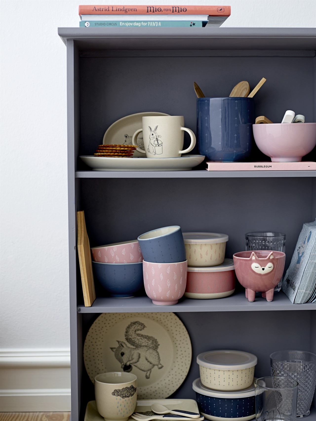 Sød tallerken og kop lige til en rugbrødsmad. Det fine sæt med en regnsky er af stentøj og kan også bruges som opbavaring på skrivebordet.