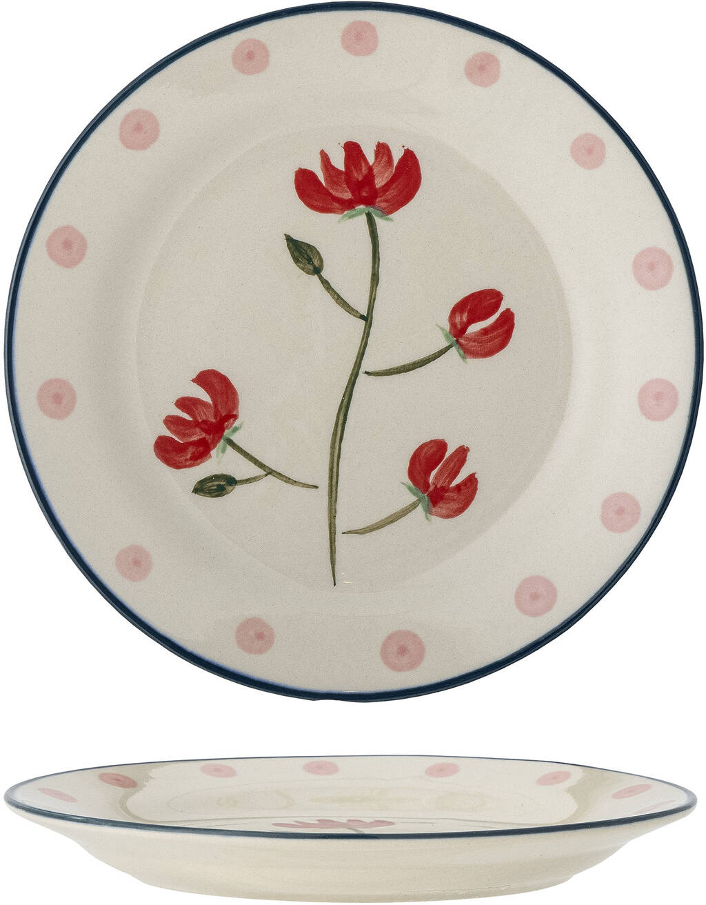 Ninette Tallerkenen fra Bloomingville MINI er en smuk og unik tallerken, der er håndmalet med en flot rød blomst i midten. Kanten er dekoreret med prikker, der giver tallerkenen et ekstra touch af charme. Denne tallerken er perfekt til servering af din yndlingsret og vil tilføje en ekstra dimension til dit spisebord. Bemærk, at produktet kan variere, da det er håndmalet.Mål: