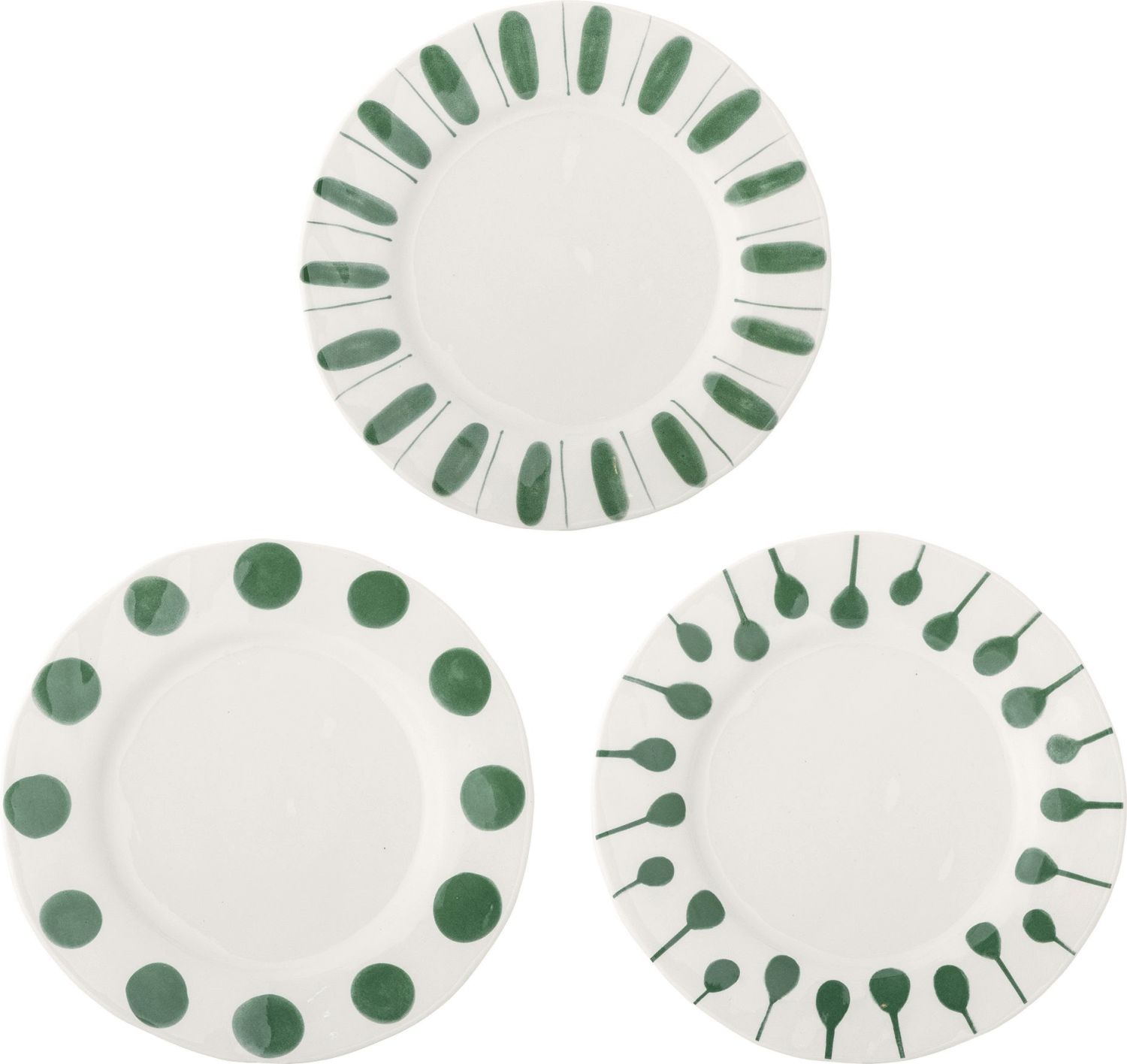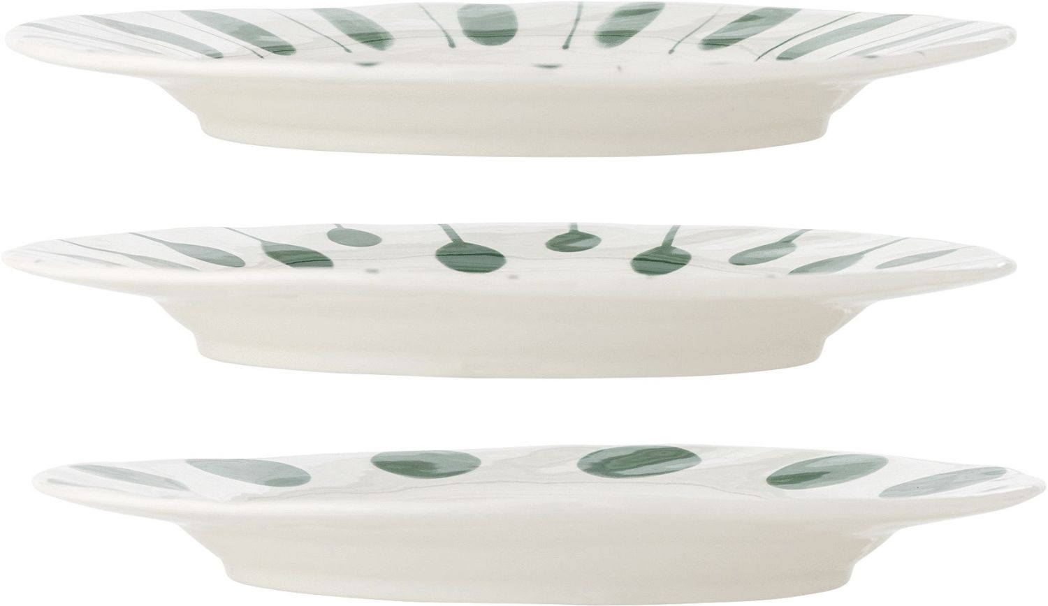 Dette sæt af tre tallerkener fra Creative Collection Linora-serien kombinerer funktionalitet med kunstnerisk udtryk. Hver tallerken er fremstillet i stentøj og præsenterer en blød grøn nuance, der skaber en rolig og harmonisk stemning på bordet. De dybgrønne former, der løber langs kanten, tilføjer et dekorativt element og gør tallerkenerne til et visuelt interessant valg til både hverdagsmåltider og festlige anledninger.