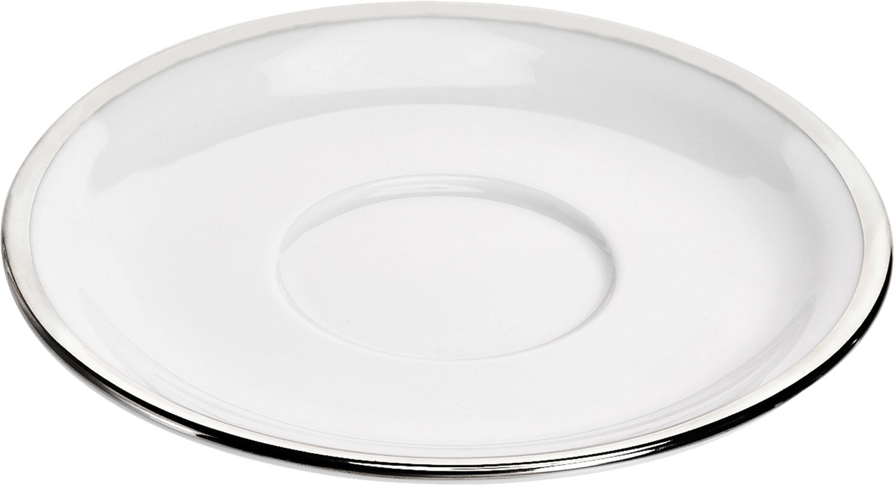 Underkop til Bistro kop Europe 18 cl og krus 27 cl.Bistro er en af Pillivuyts første serier. Det klassiske hvide porcelæn med den elegante sølvkant er oprindeligt fremstillet til franske bistroer og restauranter. Maskinopvask anbefales ikke, da sølvkanten langsomt vil blive slidt af.