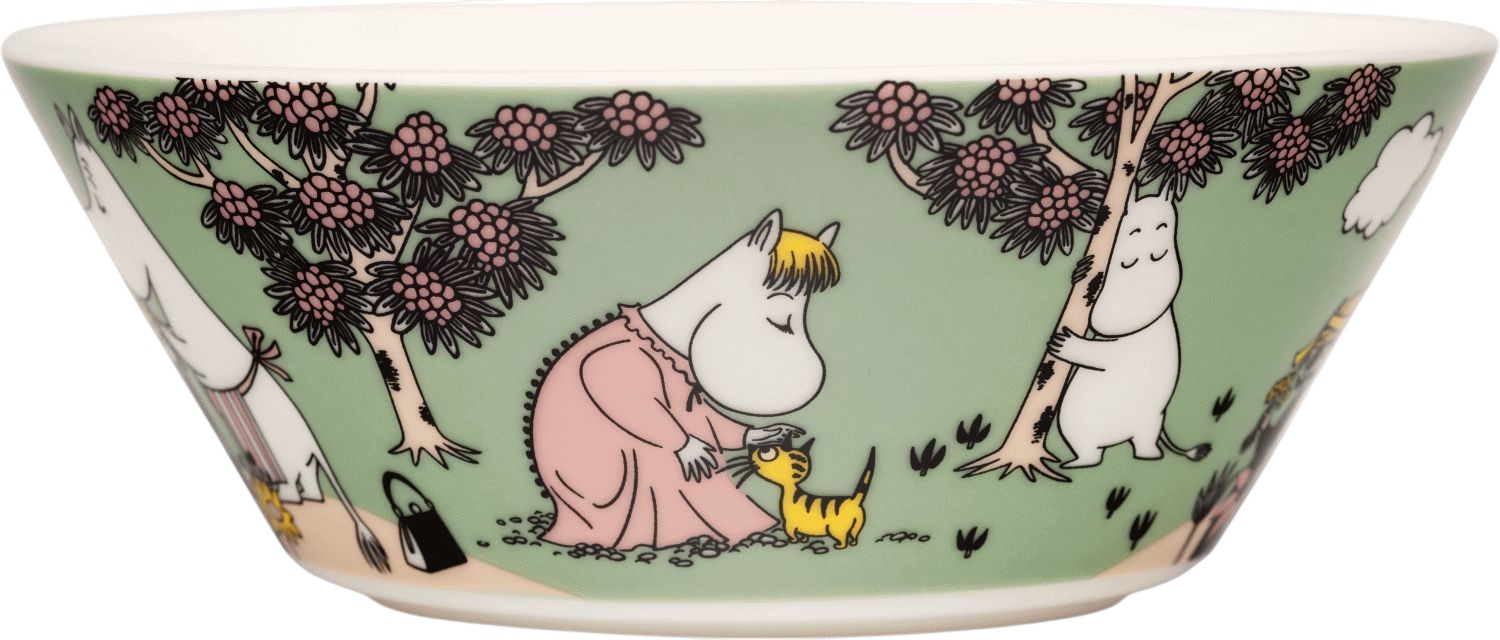 Skålen er fremstillet af Arabia, der er kendt for sit høje håndværk og sin evne til at forene klassisk porcelænstradition med tidløst design. Illustrationen på skålen indfanger essensen af mumifamiliens varme og kærlighed, hvilket gør den til mere end blot et funktionelt stykke service – den fortæller en historie og skaber stemning. Det detaljerede motiv gengiver de elskede karakterer fra Tove Janssons univers med omhu og autenticitet.
