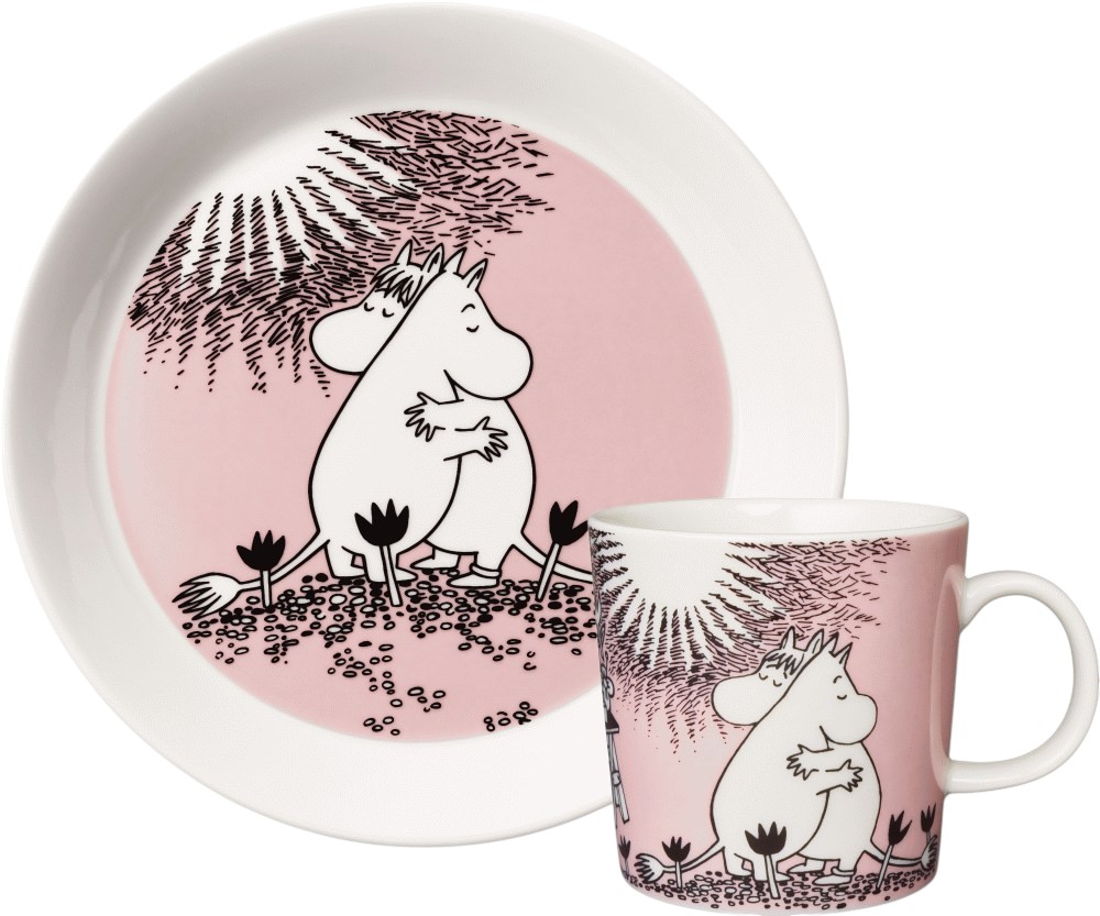 Moomin Arabia 30 års Jubilæum Mumi Krus & Tallerken, Kærlighed er en hyldest til et design, der har bevaret sin charme gennem tre årtier, og som fortsætter med at sprede glæde og kærlighed i hjem verden over.