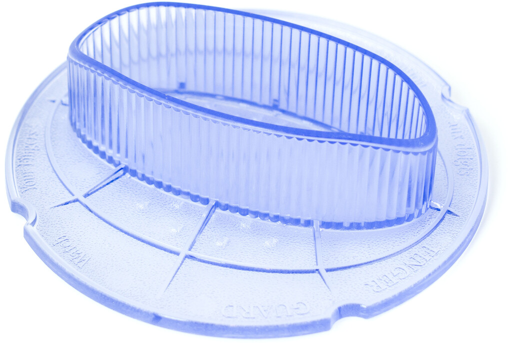 Beskytteren er fremstillet af fødevaregodkendt plast, der er både holdbar og let at rengøre. Den kompakte størrelse på 6,4 cm gør den ideel til præcisionsarbejde med mindre ingredienser som radiser, champignoner eller andre delikate råvarer, hvor kontrol er afgørende.