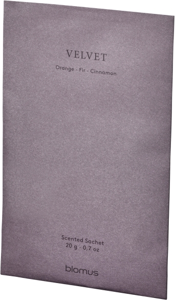 TUOKSU duftposer fra blomus bringer en sanselig oplevelse ind i dit hjem gennem velvalgte duftkompositioner, der skaber atmosfære og stemning i ethvert rum. Denne pakke med tre duftposer i varianten Velvet er designet til at fylde dine skabe, skuffer eller mindre rum med en indbydende og festlig duft, der kombinerer naturens bedste ingredienser på elegant vis.Velvet-duften er en varm og omfavnende komposition, hvor krydret kanel møder friske fyrregrene og saftig appelsin i en harmonisk balance. De blomsteragtige og krydrede nuancer flettes smukt sammen og skaber en duft, der både giver komfort og udstråler en festlig stemning. Det er en duftoplevelse, der passer perfekt til årstidernes skift og særligt til perioder, hvor man ønsker at skabe en hyggelig og indbydende atmosfære derhjemme.