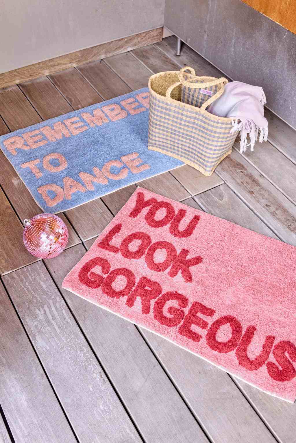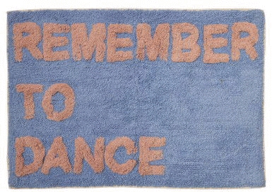 Dette charmerende gulvtæppe fra RICE bringer glæde og farve ind i hjemmet med sit livlige budskab om at huske at danse. Designet kombinerer blå og lyserøde nuancer, der skaber en legende og indbydende atmosfære i ethvert rum.Tæppet er fremstillet i bomuld, hvilket giver en blød og behagelig overflade under fødderne. Materialet er samtidig robust og velegnet til daglig brug i forskellige rum i hjemmet. Den klassiske rektangulære form gør det nemt at placere tæppet præcis, hvor du ønsker det.