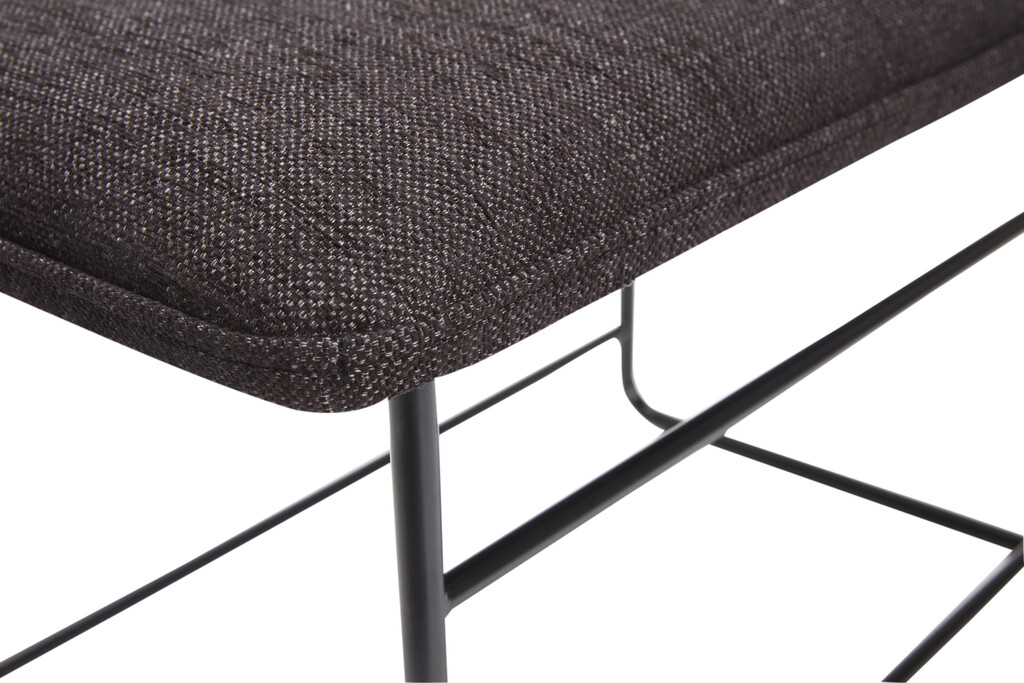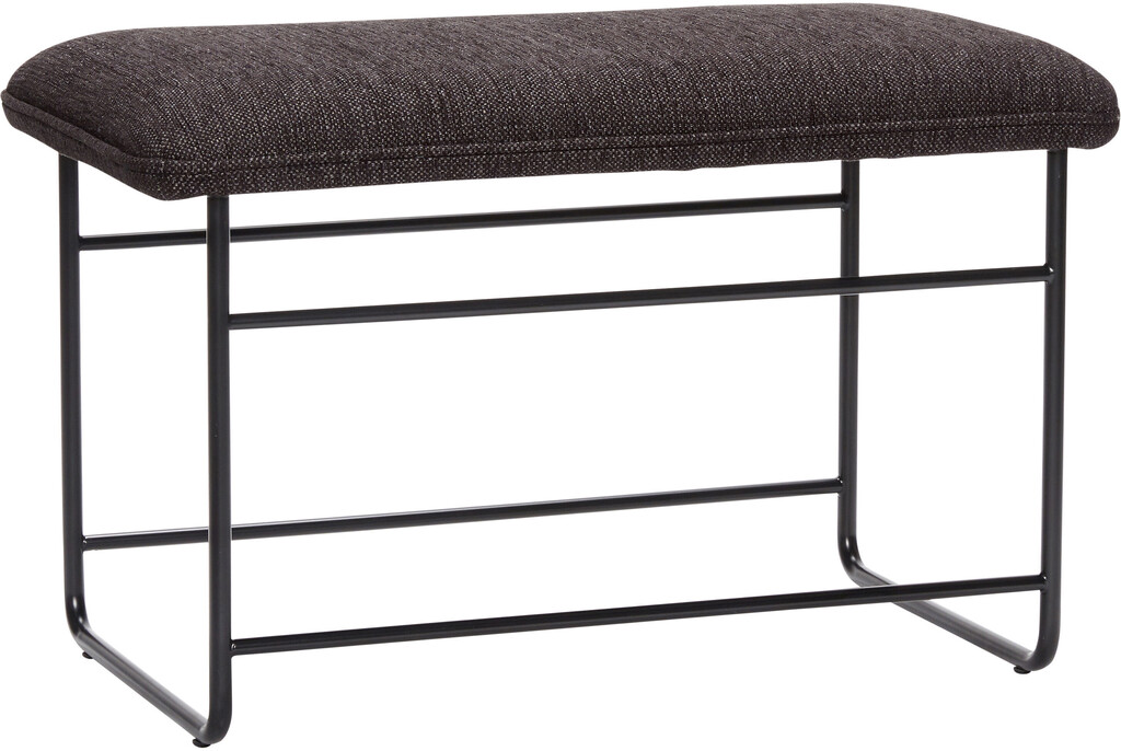 Denne skammel har en sort metalramme og et brunt polsteret sæde. De runde ben og lige linjer kombineret med den bløde pude, giver skamlen et flot og elegant udtryk. Skammelen kan bruges til flere forskellige ting i det moderne hjem. Den er brugbar både i stuen, køkkenet, gangen og soveværelset.Materiale: Jern, Krydsfiner, Polyester (100%)