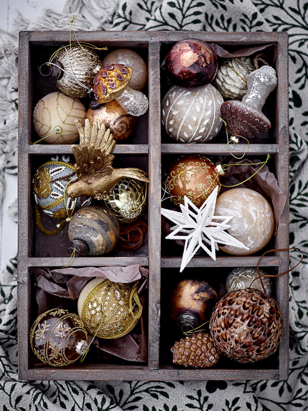 Karline Ornamentet fra Bloomingville er et smukt ornament lavet af glas i guld og jordnære nuancer. Juleornamentet tilføjer det perfekte strejf af stil til ethvert rum og vil med sikkerhed bringe den rigtige julestemning til hjemmet.Ø: 7,5 cm