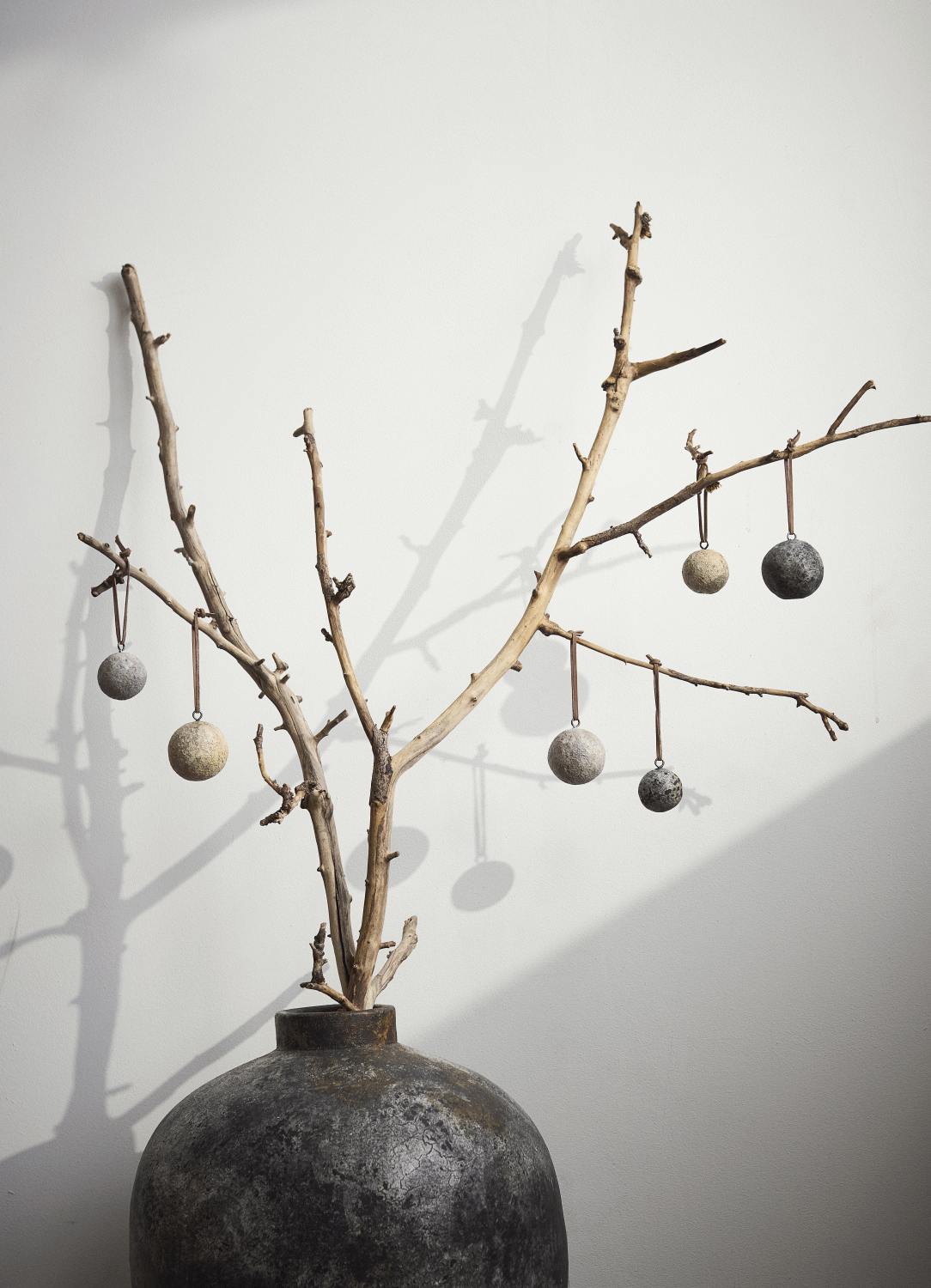 Luna dekorationskuglerne er særligt smukke, når de kombineres med naturlige elementer som grene fra stranden eller haven. Placer dem i en af Muubs Luna krukker i størrelse 60, 80 eller 100 cm for at skabe et sammenhængende, stilfuldt arrangement. Kuglerne fungerer perfekt både som sæsonbetonet dekoration og som permanent del af indretningen.