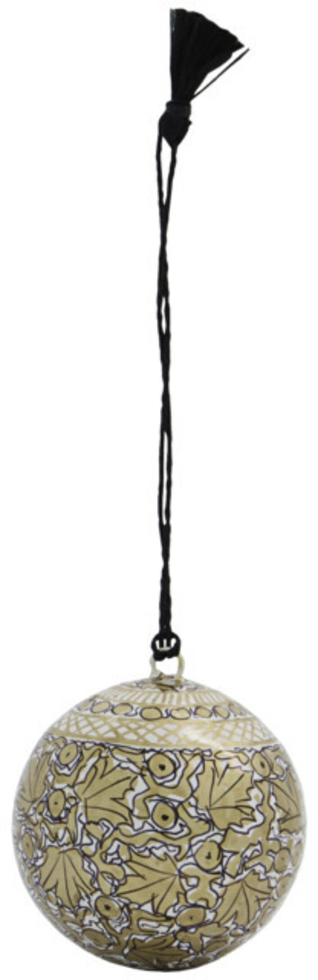 Denne julekugle af papmaché giver dit julepynt et hjemmelavet islæt. Mache fra House Doctor er en stemningsfuld tilføjelse til juletræet med sit dekorative mønster i guld, sort og sølv. Elegante farver i et håndlavet design, der viser ekstraordinær opmærksomhed på detaljen. Hæng julekuglen på træet og pynt som du ønsker. Med lignende farver, en vidunderlig blanding af materialer eller helt enkle ornamenter for at få juletræskuglen til at skille sig ud. Den vil også pynte flot sammen med en lysestage på en dekorativ bakke på middagsbordet.Mål:
