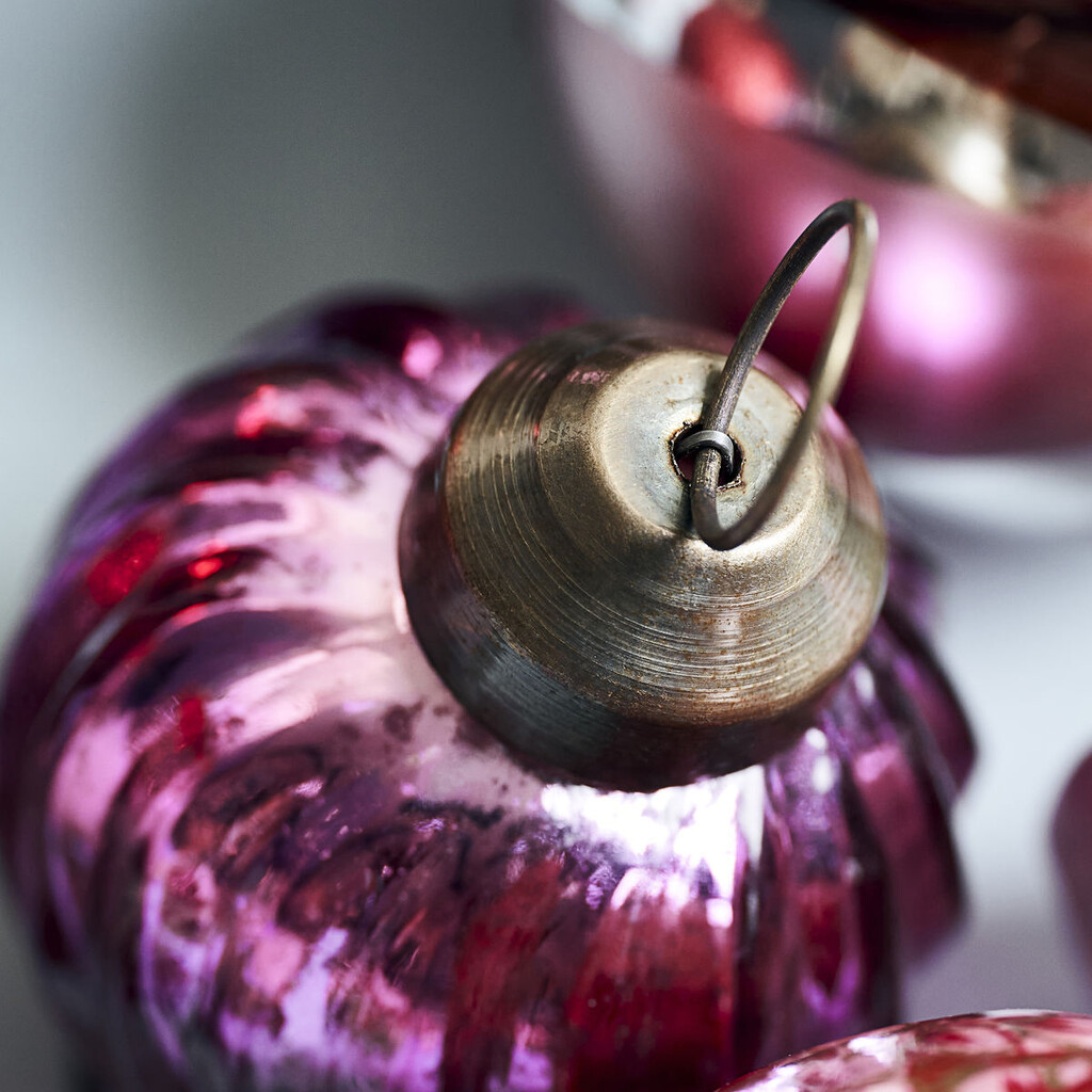 Denne lyserøde, snoede julekugle fra House Doctor tilføjer et farvestrejf til din julepynt. Som prikken over i'et har julekuglen en smuk, antik overflade og en metaltop, som udstråler vintagestil. Den vil give dit juletræ, din dekorative bakke eller grenen i din gulvvase et festligt og trendy look. Kombiner den med julepynt i lige så levende farver, eller brug den sammen med en klassisk julefarve som sølv for at tone den lidt ned. Lyserød er måske en lidt usædvanlig farve til jul, men det er netop det, der gør denne Twist juletræskugle så vidunderlig.Mål: