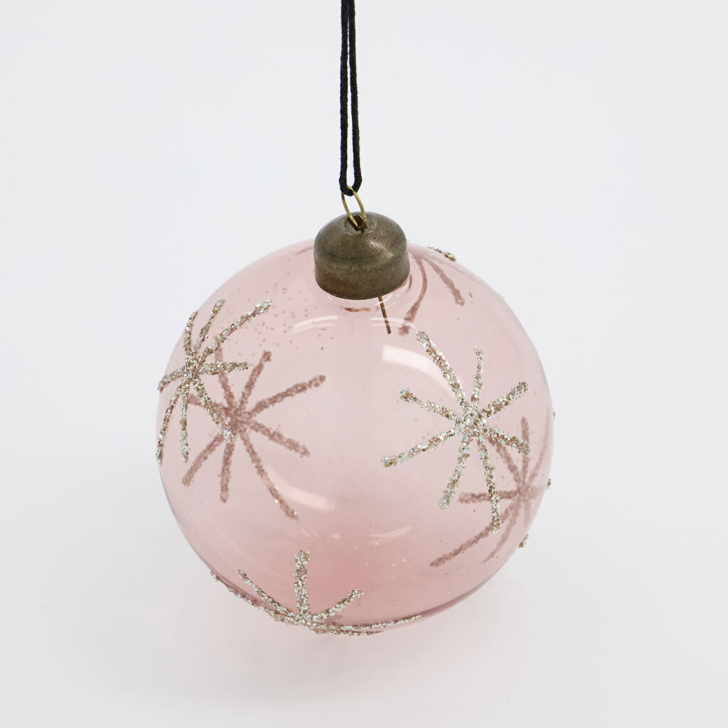 Den lyserøde farve skal på juletræet i år. Sæt denne subtile lyserøde og gennemsigtige Star-glaskugle fra House Doctor på dit juletræ, hæng den på en gren i en gulvvase, eller stil den i en dekorativ bakke på middagsbordet. Som en smuk detalje er julekuglen pyntet med snefnug i sølvglitter. Afhængigt af din personlige smag kan du sætte julekuglen sammen med samme subtile nuancer eller skabe en eklektisk jul ved at blande lyserød med blå, grøn, sølv og guld. Alt er muligt med en så alsidig og klassisk julekugle.Mål: