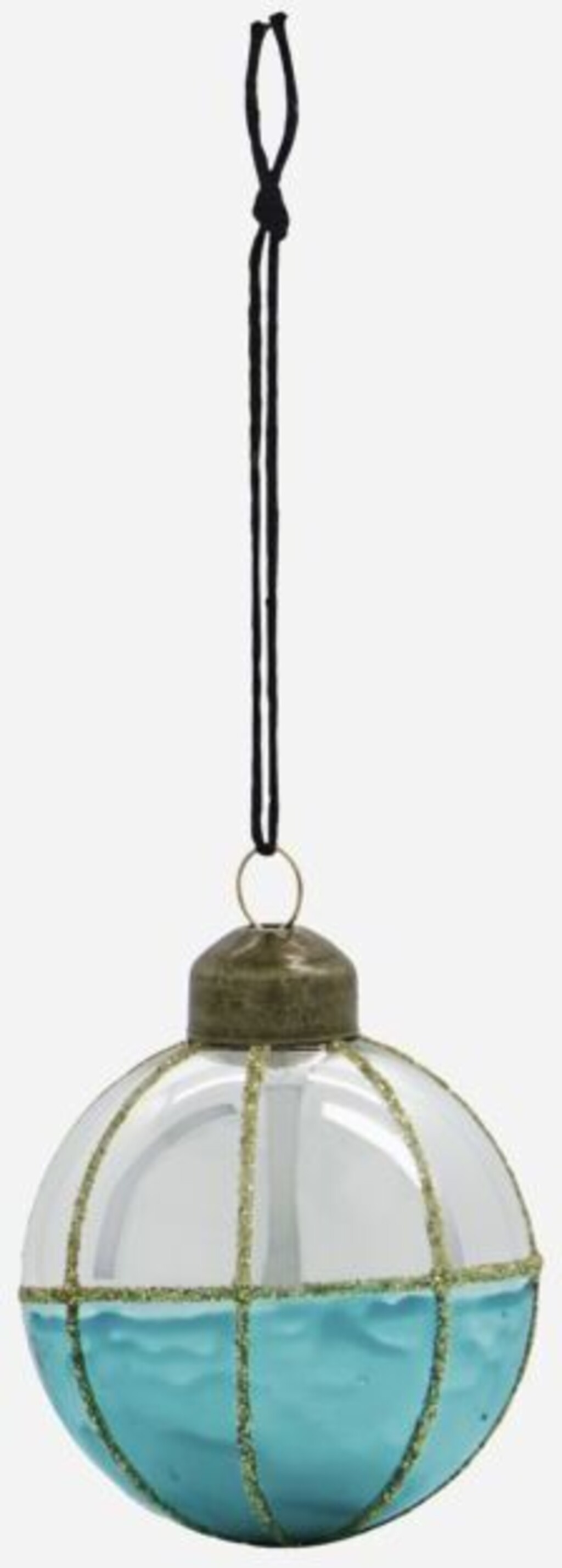 Har du overvejet at bruge turkis i din julepynt? Denne julekugle fra House Doctor balancerer turkis og sølv for at give dit juletræ et strejf af det uventede - og masser af elegance. Smalle striber af guldglimmer sætter prikken over i'et, så du kan kombinere julekuglen med lige præcis de farver, du ønsker. Kun fantasien sætter grænser. Pynt med sølv, så denne julekugle er et overraskende element, eller kombiner en række forskellige farver for at opnå et individuelt look.Mål: