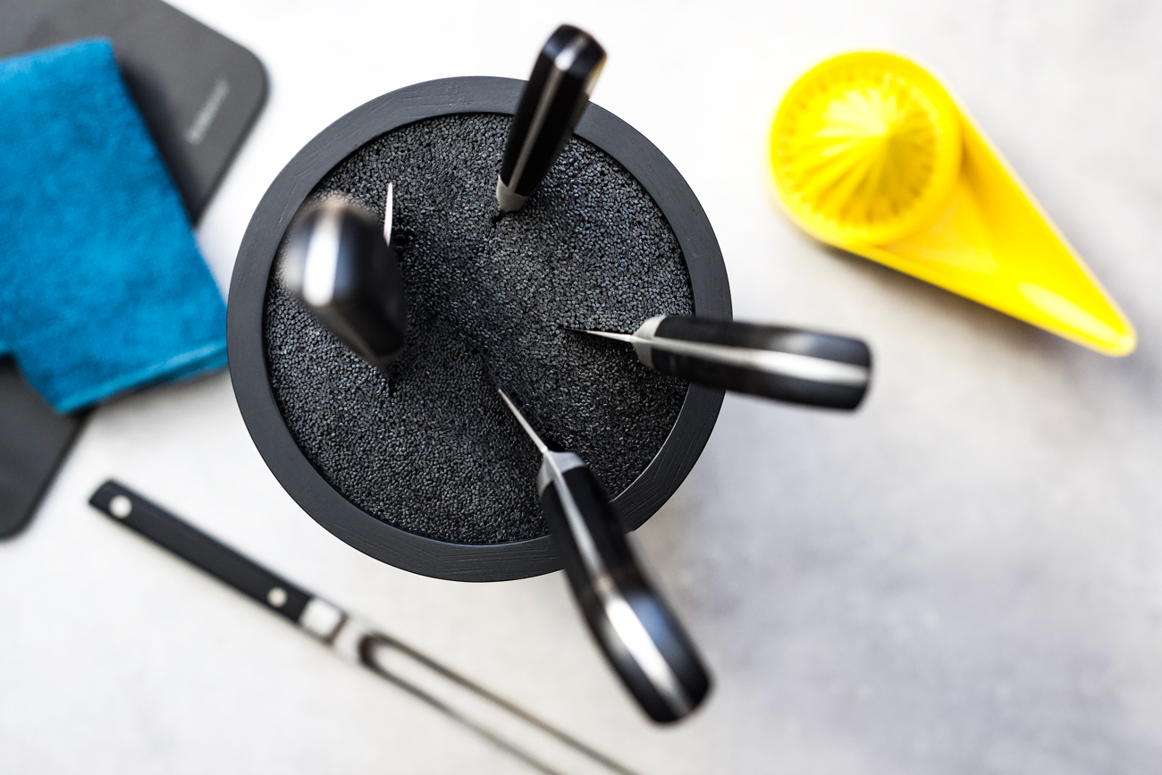 - Fleksibel opbevaring der tilpasser sig enhver knivkombination