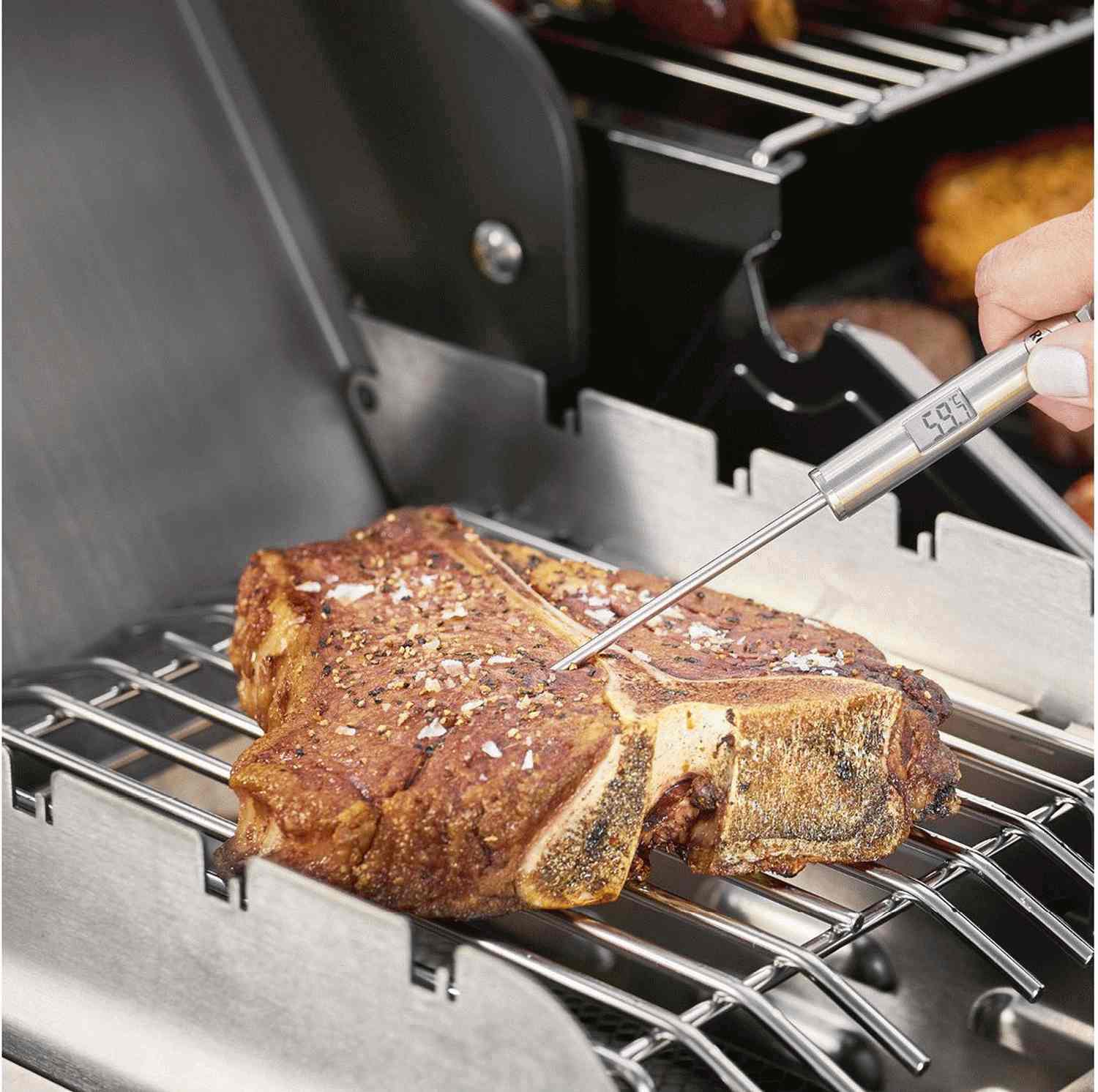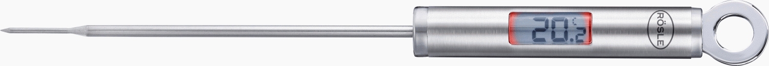 Rösle Gourmet Termometer i rustfrit stål er det perfekte værktøj til præcis temperaturmåling i køkkenet. Dette digitale termometer giver dig mulighed for at opnå perfekte resultater hver gang, uanset om du tilbereder en saftig steg, kontrollerer temperaturen på babymad eller sikrer den ideelle temperatur for din vin eller te.Det elegante termometer i Rösles velkendte kvalitet måler temperaturer fra -40 °C til +200 °C med høj præcision, hvilket gør det til et uundværligt redskab for både hverdagsmadlavning og særlige anledninger. Den slanke, funktionelle design i rustfrit stål passer perfekt ind i det moderne køkken og afspejler den skandinaviske designfilosofi, hvor form og funktion går hånd i hånd.