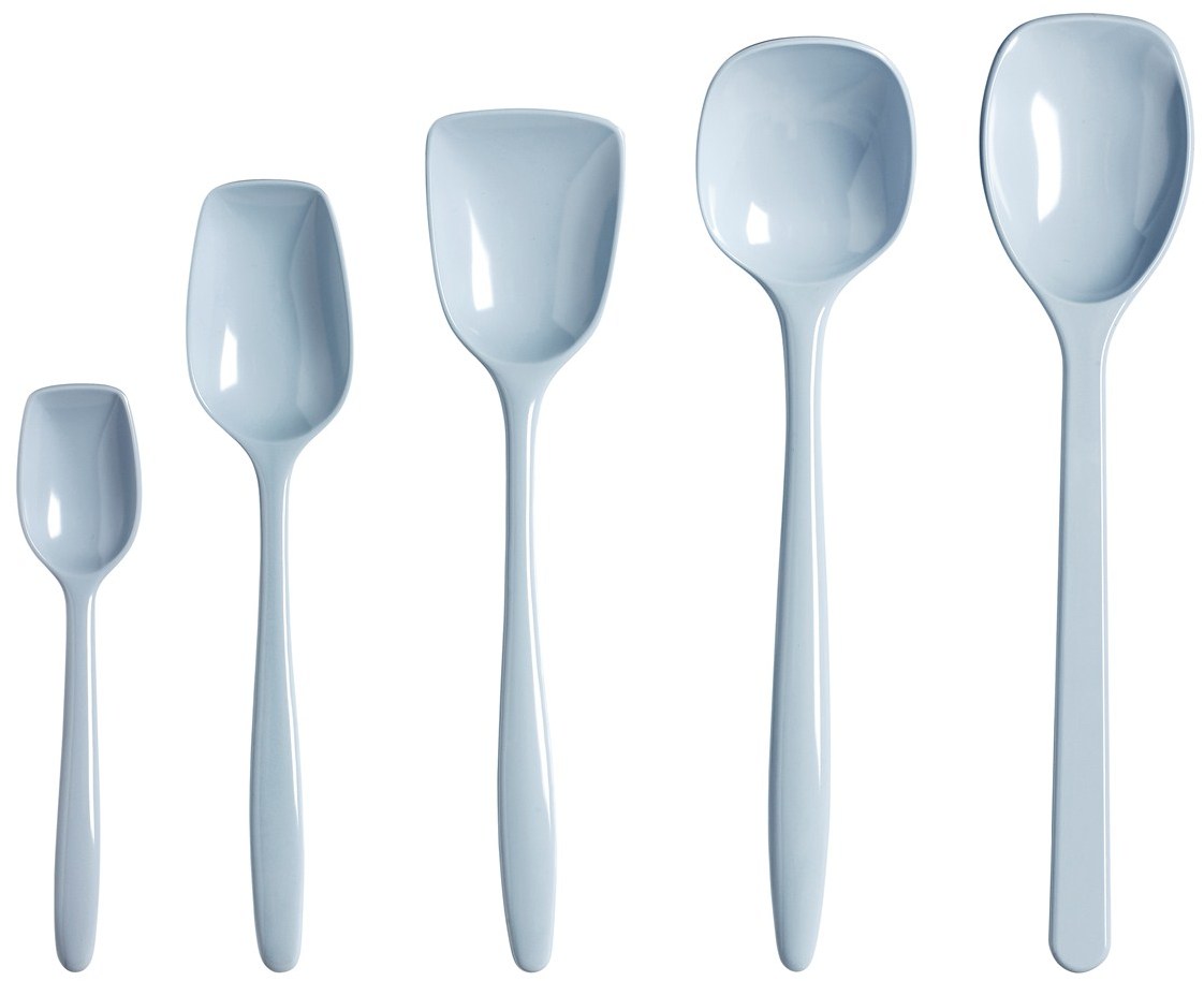 Rosti Mepal Grydeskesæt 5 dele blåRosti Mepal sortimentet indeholder et væld af redskaber i forskellige størrelser, udformninger og farver. Grydeskeer i flere størrelser dækker behovet når der skal røres i gryder og skåle. Rosti redskaberne fås i de samme farver som Margrethe-skålene, så det er altid muligt at matche skåle og redskaber - eller alternativt lave sin egen spændende farvekombination. Melamin er velegnet til opvaskemaskine, men kan ikke bruges i mikroovn og fryser. Melamin har den gode egenskab i forhold til plastik, at det holder formen selv ved tilførsel af varme fødevarer, hvilket er en stor fordel i forbindelse med madlavning.