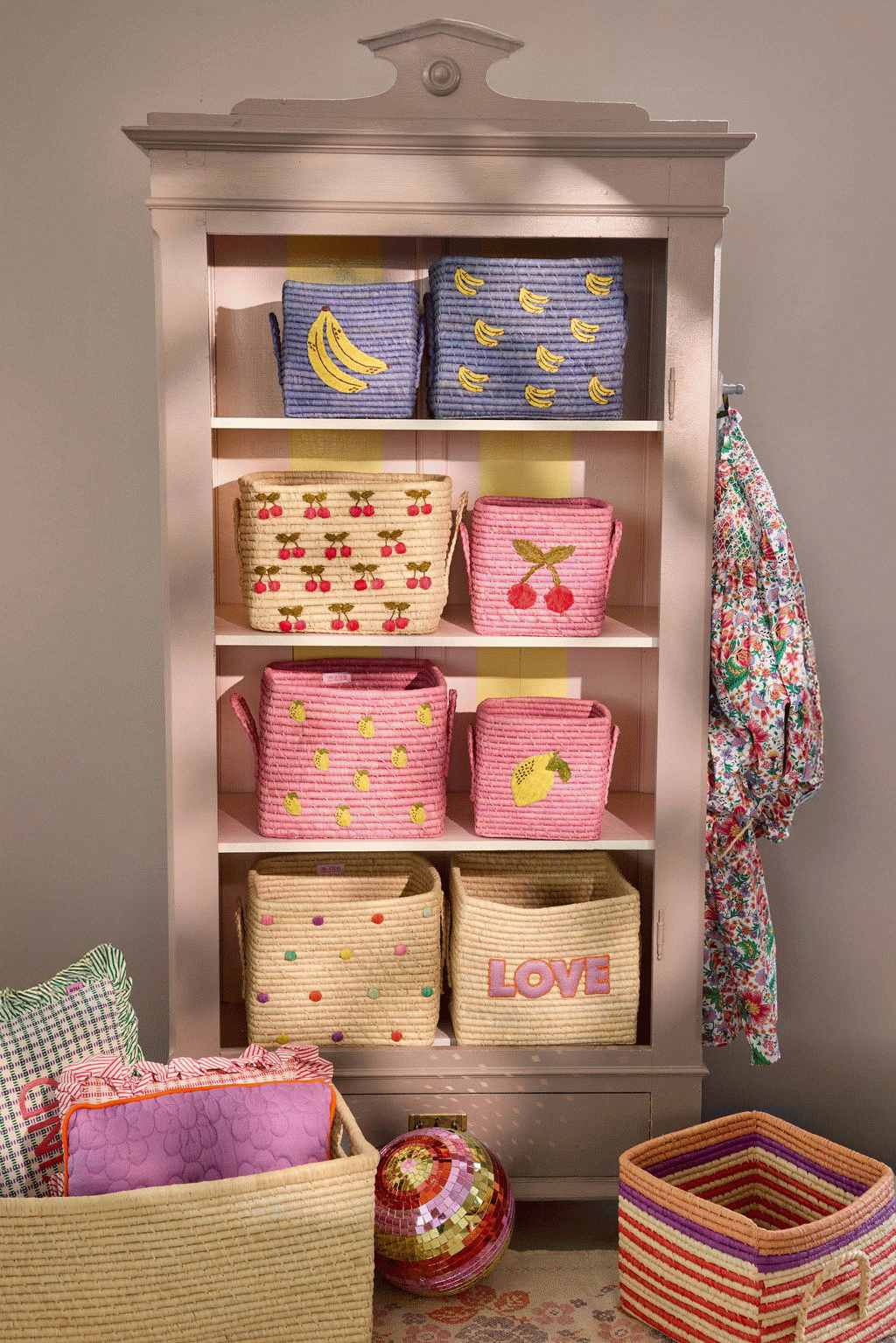 Den multifarvede stribet design gør kurven til mere end bare en opbevaringsløsning – den fungerer også som et dekorativt element, der tilfører liv og farve til enhver stue, soveværelse eller børneværelse. RICE er kendt for sine farverige og funktionelle produkter, og denne kurv er ingen undtagelse. Den passer lige så godt i en hyldereol som på gulvet, hvor den kan samle tingene op og give rummet en mere organiseret atmosfære.