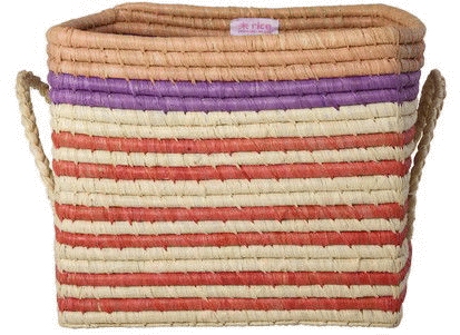 - Håndlavet kurv fra RICE med multifarvede striber
