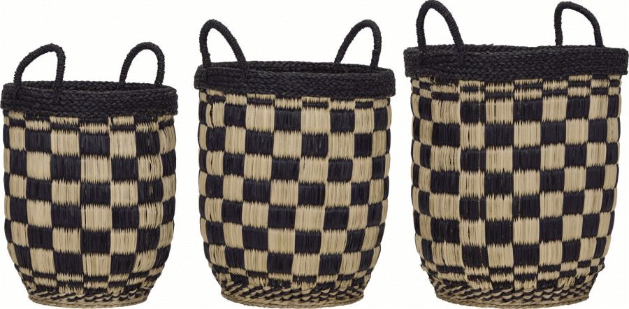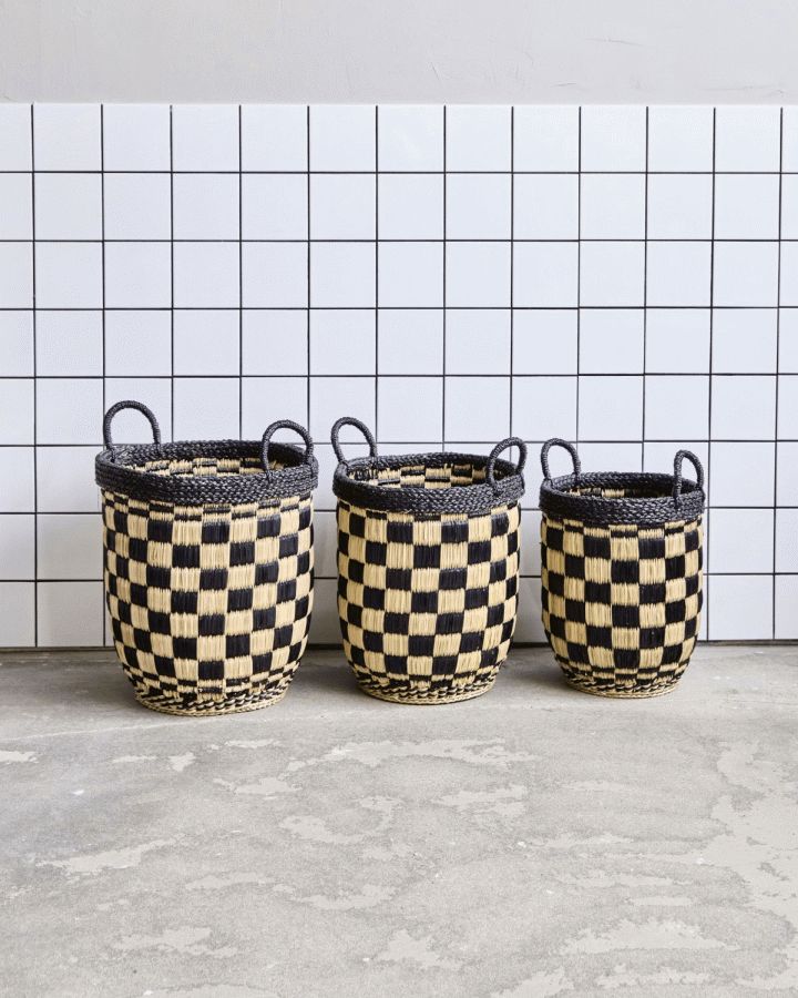 Dette sæt af tre håndflettede kurve fra House Doctor kombinerer funktionalitet med et stilrent, grafisk udtryk, der passer perfekt ind i den moderne boligindretning. Kurvene er fremstillet i naturligt søgræs og præsenterer et elegant ternet mønster i sort og naturfarve, som tilfører et afslappet, men samtidig visuelt interessant element til ethvert rum.Hver kurv i settet er omhyggeligt håndflettet, hvilket sikrer en unik karakter og autenticitet. Det grafiske, ternede mønster skaber en harmonisk kontrast mellem de mørke og lyse nuancer, og gør kurvene til både praktiske opbevaringsløsninger og dekorative indslag i hjemmet. Søgræssets naturlige tekstur og farvetoner bidrager til en varm og indbydende atmosfære, der komplimenterer både skandinaviske og moderne indretningsstile.