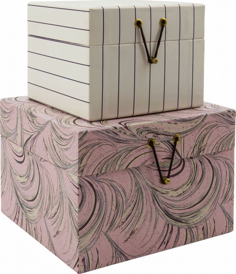 - Sæt med to opbevaringskasser i sand og afdæmpet rosa