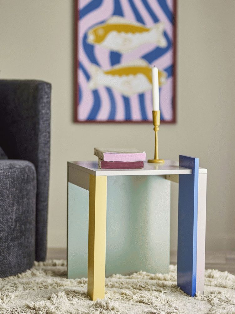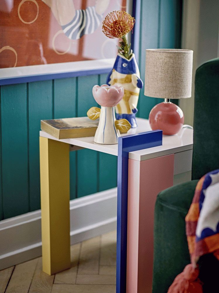 Banjo Sidebordet fra Bloomingville er et kompakt bord i MDF med en malet overflade. Det har en lys rosa tone med diskrete detaljer i varm gul og sart grøn, som giver en blid kontrast til den glatte overflade.Længde: 40 cm