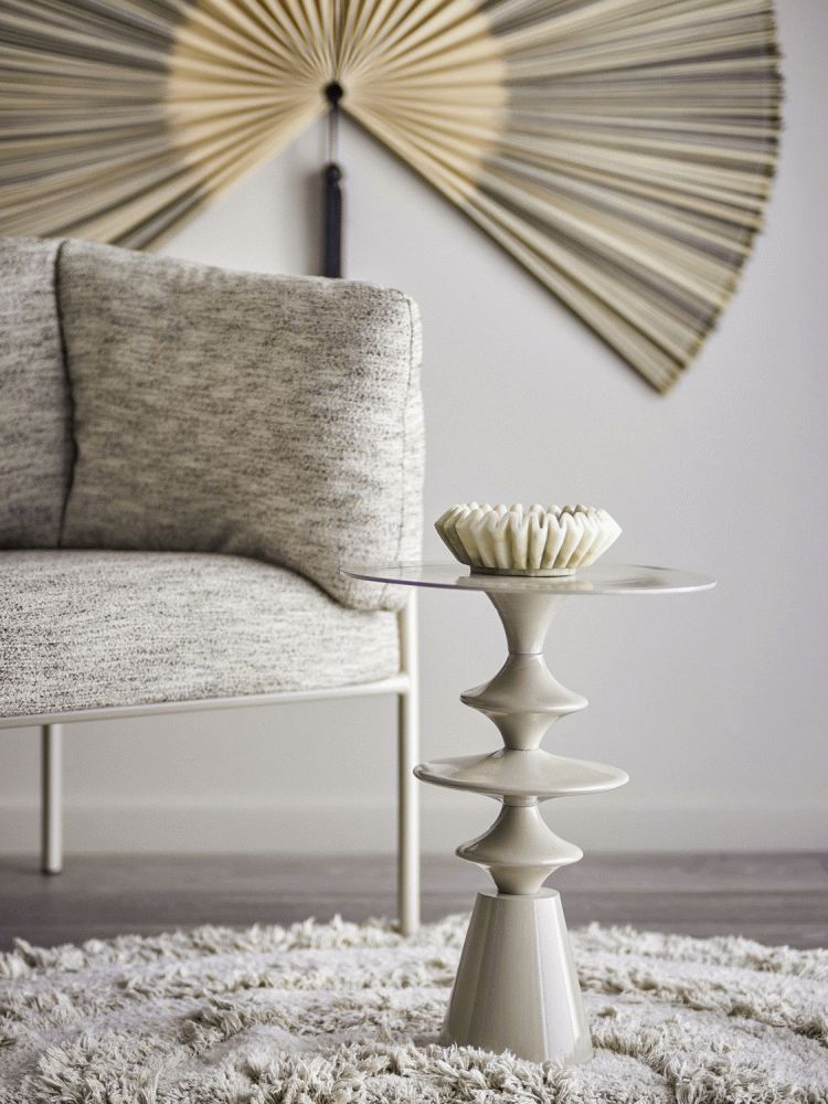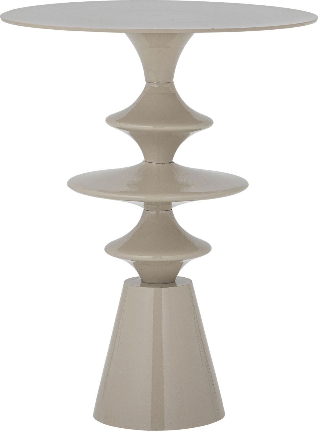 Samio Sidebordet fra Bloomingville er et design i aluminium med en pulverlakeret overflade i lys beige. Den skulpturelle, lagdelte form og den afrundede silhuet fremhæves af den blanke overflade. Leveres med diskrete gulvskånere, der beskytter gulvet og sikrer stabilitet.Højde: 47 cm