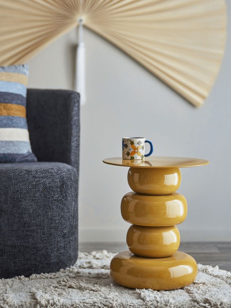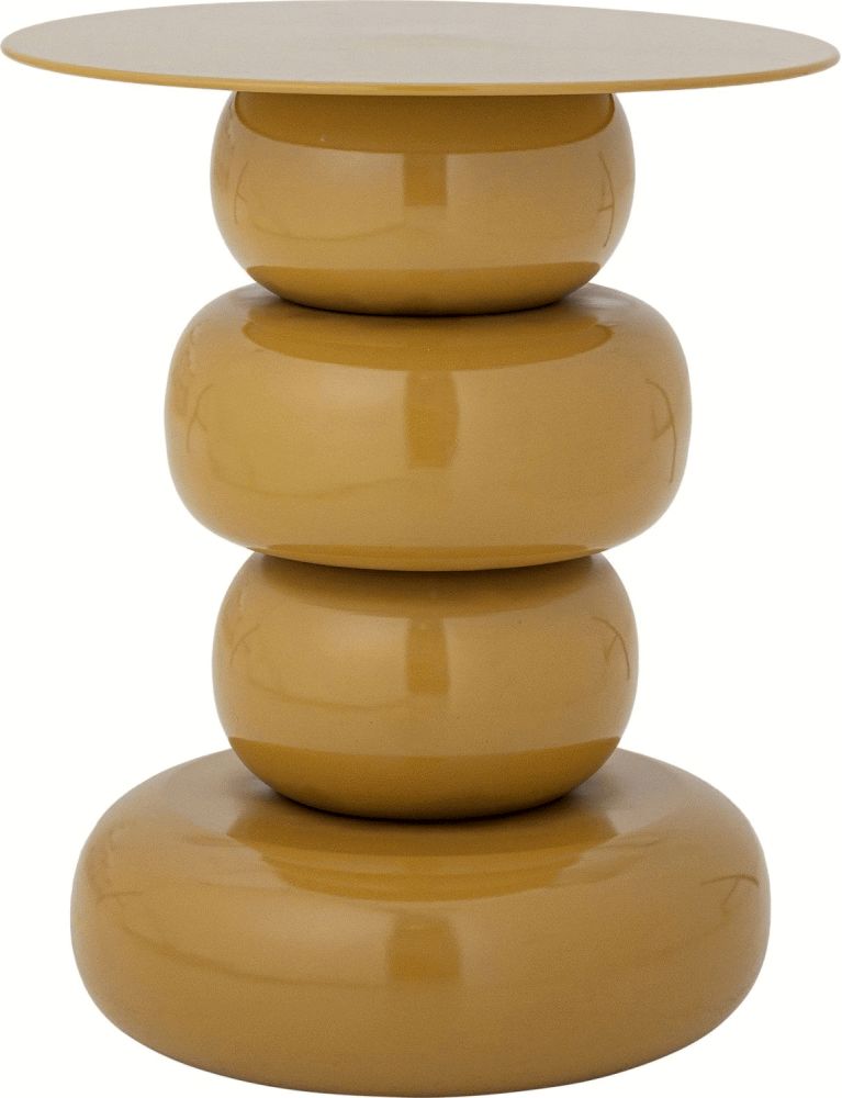 Olonne Sidebordet fra Bloomingville er et skulpturelt bord i jern, pulverlakeret i en blank gul finish. Understellet består af fire afrundede, stablede elementer, som bærer en slank, plan bordplade. Bordet leveres med diskrete filtpuder, der giver stabilitet og beskytter gulvet.Højde: 48 cm
