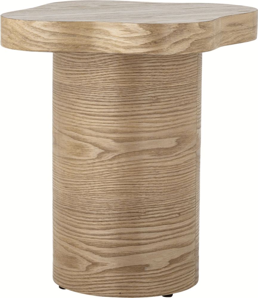 Elmer Sidebordet fra Bloomingville har en slank, cylindrisk sokkel og en bordplade med mat overflade. Bordet er lavet af MDF og fineret med træ i en varm tone og smuk åretegning. Underneden sidder små, diskrete dupper, der giver stabilitet og skåner gulvet. Den dæmpede brune farve fuldender det underspillede udtryk.Længde: 46 cm