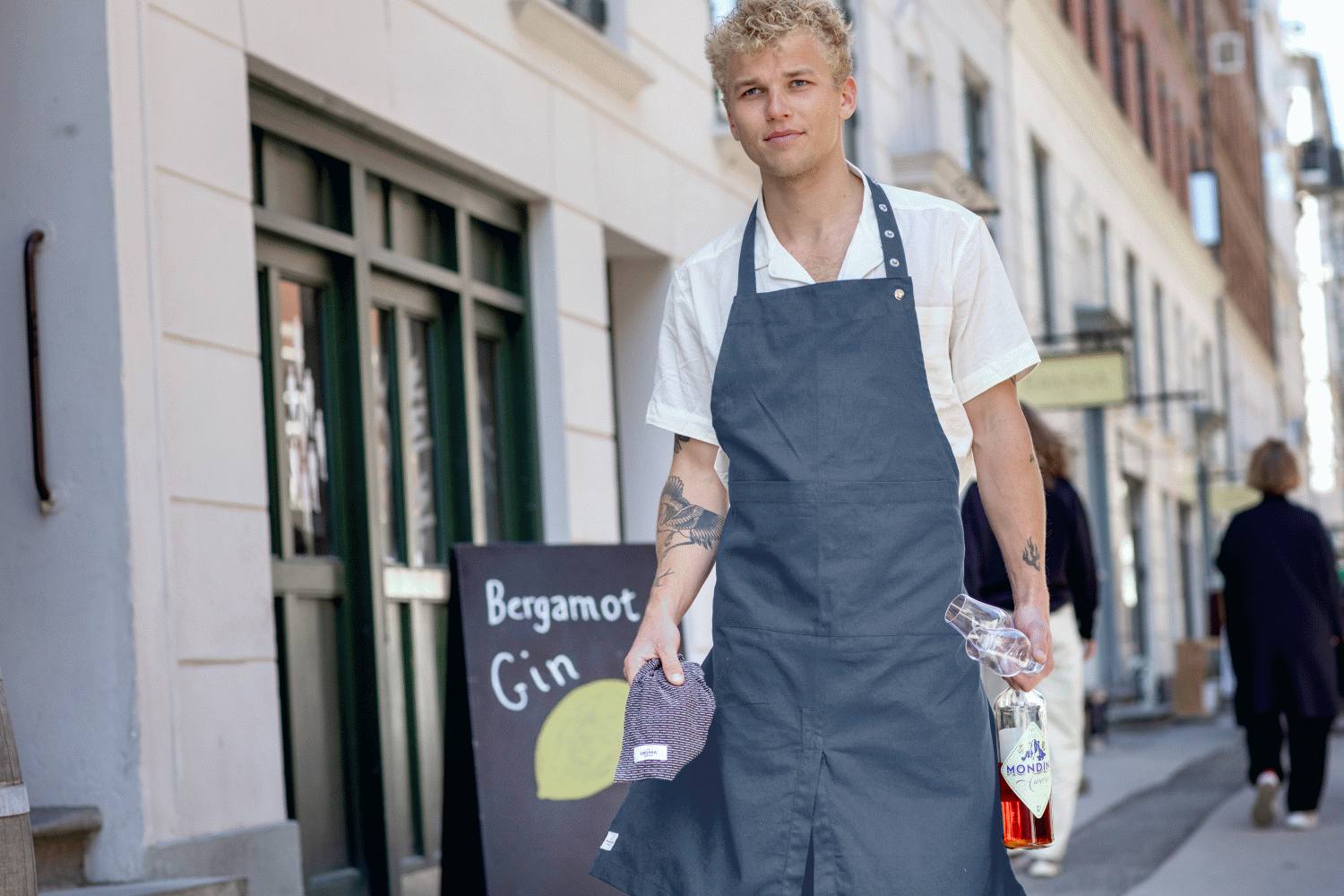 Forklædet er fremstillet i 100% GOTS-certificeret bomuld, hvilket sikrer høj kvalitet og en behagelig fornemmelse mod kroppen. Det klassiske design gør det velegnet til alle voksne, uanset alder eller køn, og det passer perfekt til både hjemmebrug og professionelle køkkener. Den diskrete Grey Blue farve tilføjer en moderne og stilren dimension til dit køkkentøj.