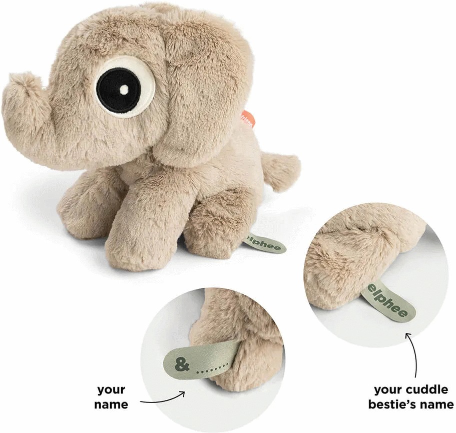 Bamsen er formet som en tredimensionel figur, der giver en behagelig fornemmelse at holde om. Den er ideel til trøst og nærvær, uanset om det er til middagslur eller aftenhygge. Elphee er designet med tanke på at skabe tryghed og kan nemt tages med overalt – fra vuggen til barnevognen.