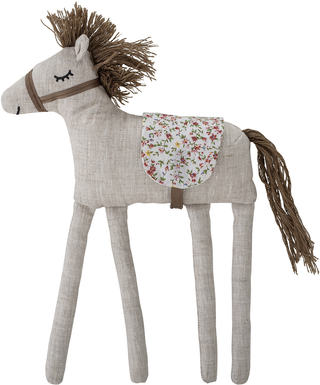 Jesse Bamse fra Bloomingville Mini er en sød hest lavet af hør og fyldt med polyester. Hesten har en smuk sadel med blomstermønster og brunt hår og hale. Blødt legetøj er en sød gave til børn at lege med eller som dekoration på børneværelset.Længde: 23
