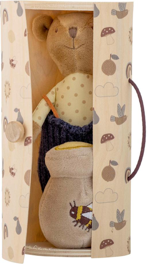 Willes Bamsen fra Bloomingville MINI er en charmerende lille bamsebjørn, der hurtigt vil vinde hjerter med sin fine honningkrukke. Den søde bjørn leveres i en smuk gaveboks med printede figurer, som også kan bruges som bamsens eget lille hus.Mål: