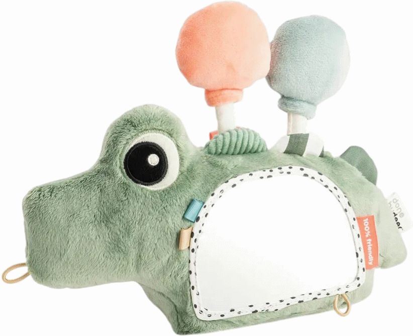 Dette charmerende aktivitetsgulvspejl fra Done by Deer er designet med den lille opdagelsesrejsende i tankerne. Med sin legende krokodilleform i friske grønne nuancer inviterer spejlet barnet til at udforske verden omkring sig på en sjov og engagerende måde. Produktet kombinerer funktionel leg med gennemtænkt design, der passer perfekt ind i det moderne hjem.Spejlet fungerer som et fascinerende legeværktøj, der fanger barnets opmærksomhed og vækker nysgerrigheden. Når de små ligger på maven, bliver de naturligt tiltrukket af deres eget spejlbillede, hvilket gør maven-tiden både sjovere og mere motiverende. Dette hjælper med at styrke nakke- og ryg muskulaturen på en naturlig og behagelig måde.