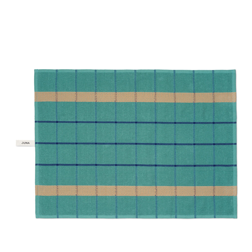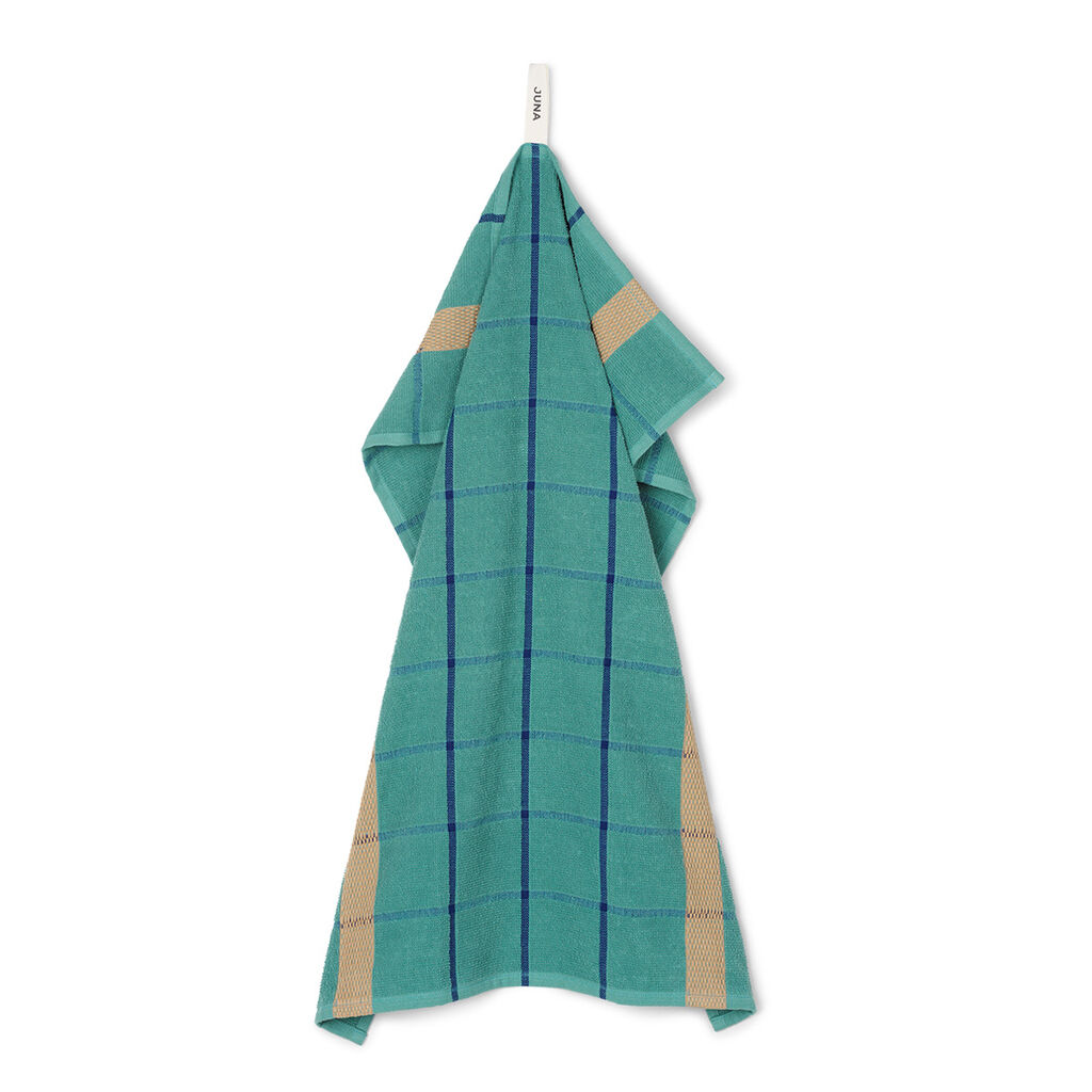 Frisk køkkenet op med lækre viskestykker i 100% økologisk bomuld, der bakker op om en bæredygtig livsstil. Frotté-viskestykkerne med turkis bund og tern i kontrastfarver henter sin inspiration i ’gamle dage’ og livet uden opvaskemaskine, hvor alle hjalp til med opvasken efter store familiemiddage. Viskestykket er GOTS-certificeret. Tåler vask ved 60°.