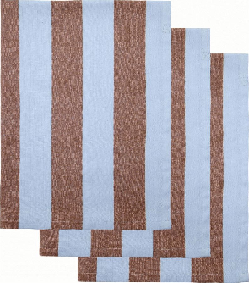 House Doctor præsenterer Cook viskestykker i et sæt af tre, der kombinerer praktisk funktion med et stilfuldt udtryk. Det vævede, stribede mønster i brune og lyseblå nuancer giver et moderne twist til køkkentekstiler og passer perfekt ind i både klassiske og moderne køkkener. Disse viskestykker er designet til at klare hverdagens udfordringer, hvor både æstetik og funktionalitet er i højsædet.Fremstillet i 100% vævet bomuld sikrer Cook viskestykkerne en høj absorberingsevne, der gør dem ideelle til at tørre tallerkener, glas og bestik efter opvask. Den vævede bomuldskvalitet bidrager samtidig til produktets slidstærke egenskaber, så viskestykkerne bevarer deres form og funktion selv efter gentagen brug og vask. Det stribede design tilføjer en dekorativ detalje, der løfter køkkenets indretning, mens farvekombinationen af lyseblå og brune toner skaber en harmonisk balance.