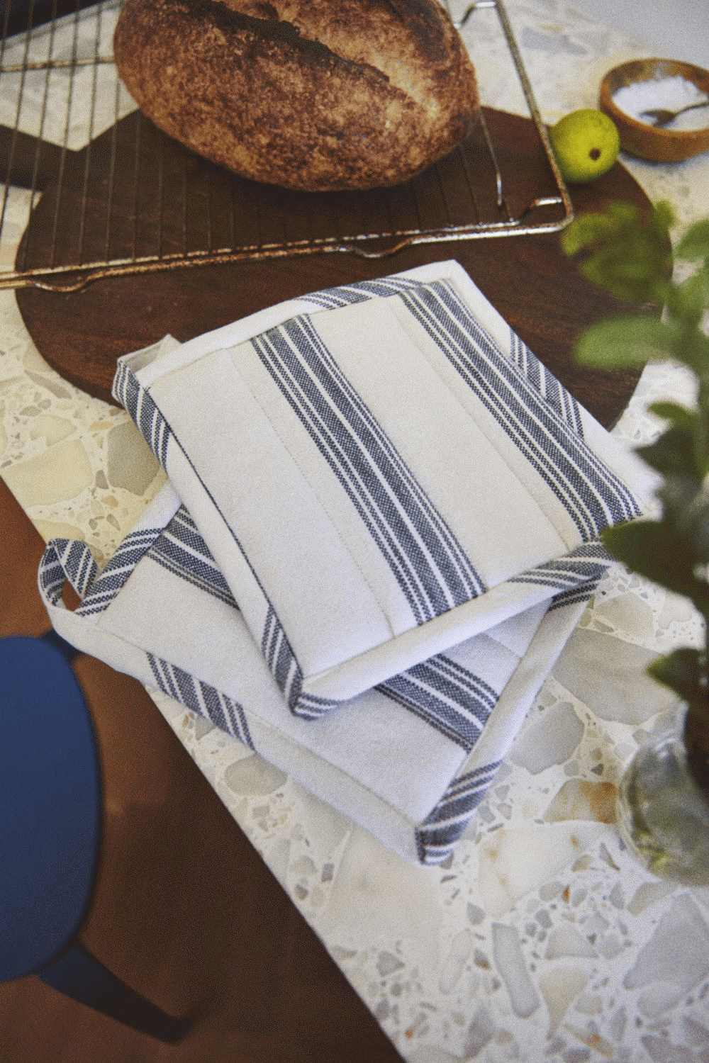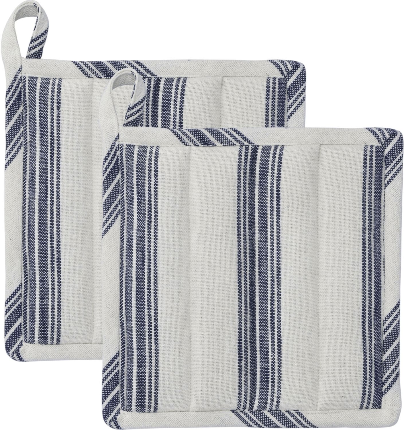 De blå striber giver et visuelt løft til køkkenet og skaber en harmonisk sammenhæng, når de kombineres med andre tekstiler fra samme serie. Uanset om du er midt i travle madlavningsstunder eller nyder en rolig stund ved køkkenbordet, tilføjer disse grydelapper både stil og praktisk værdi til dit køkken.