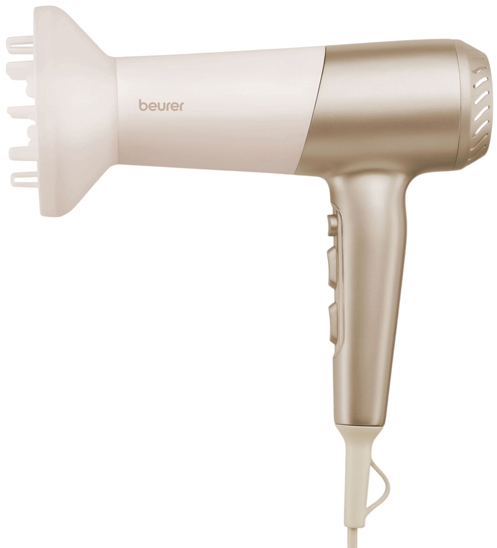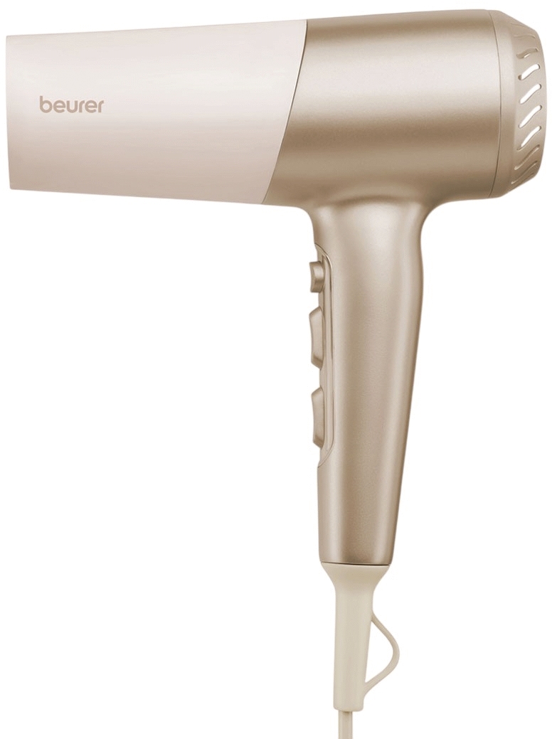 Beurer HC070 kombinerer professionel ydeevne med elegant design i denne kraftfulde 2100 W hårtørrer, der forvandler din daglige hårroutine til en salon-lignende oplevelse. Med sin sofistikerede hvid og bronze finish passer denne hårtørrer perfekt ind i ethvert moderne badeværelse, mens den avancerede teknologi sikrer optimale resultater for alle hårtyper.Den innovative ionteknologi arbejder aktivt for at neutralisere statisk elektricitet og reducere krus, hvilket resulterer i glattere og mere glansfuldt hår. Den keramiske belægning sikrer en jævn varmefordeling, der beskytter dit hår mod skadelig udtørring og overophedning. Denne kombination af teknologier gør HC070 til det ideelle valg for både daglig styling og særlige lejligheder.