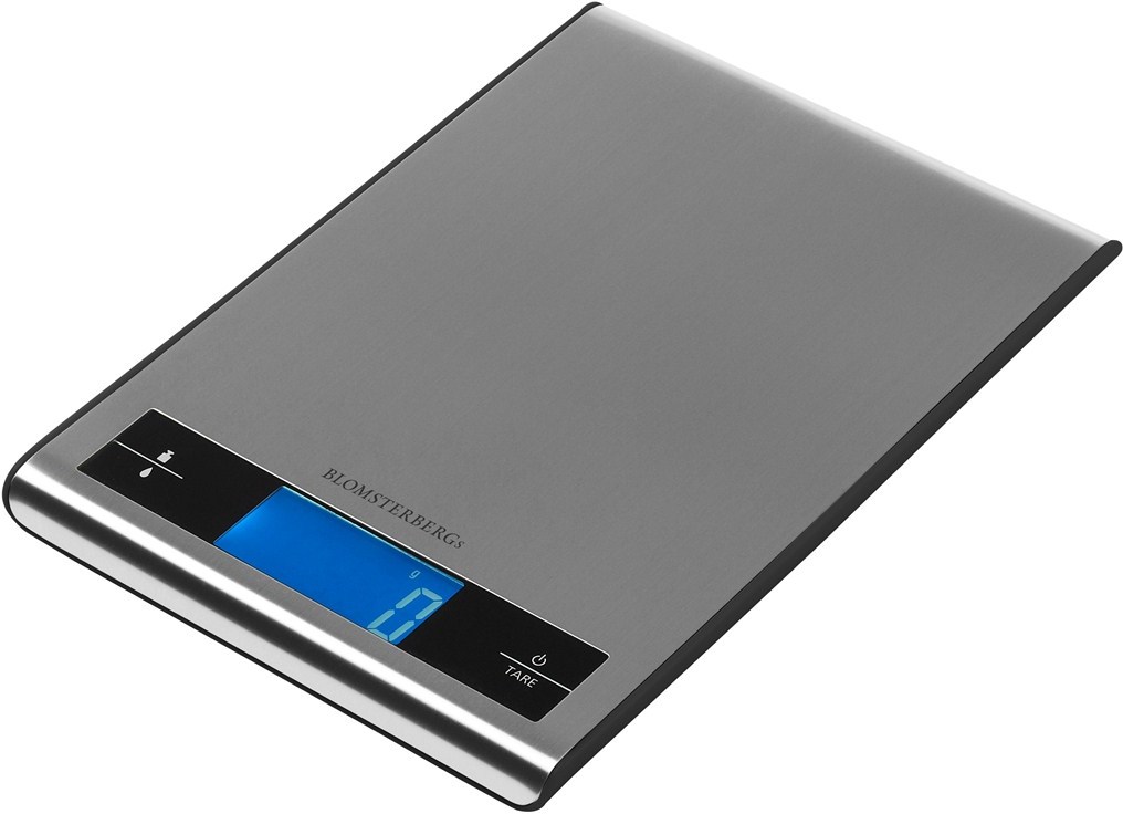 Blomsterbergs Køkkenvægt er uundværlig til alle bageopgaver, og den kan veje både g, lb, fl:oz og ml, så man lettere kan følge fx udenlandske opskrifter. Vægten har selvfølgelig både tara-funktion og automatisk slukning.