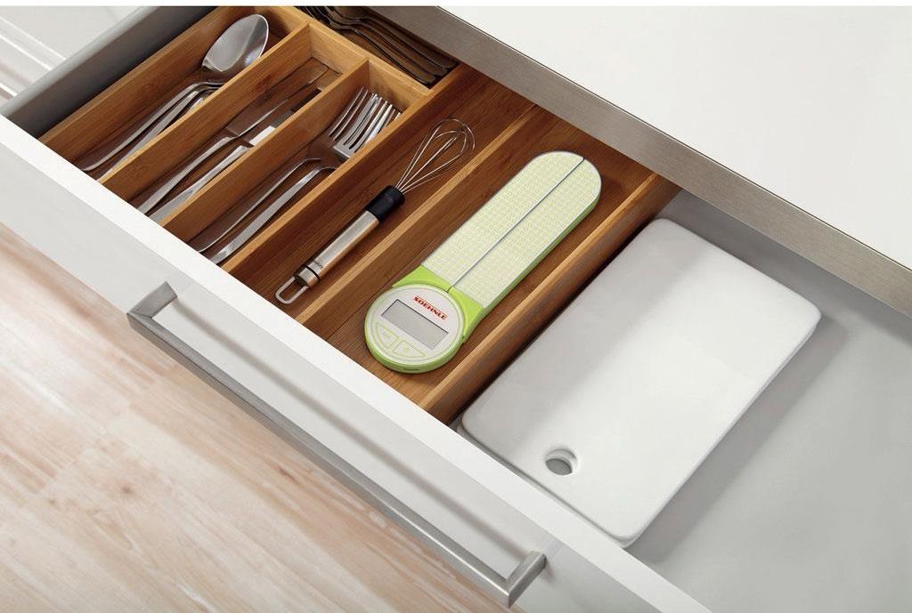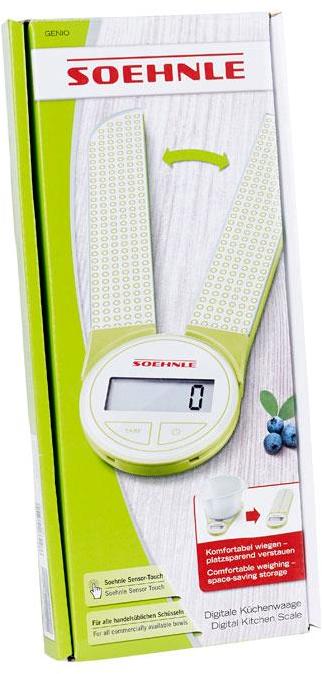 Kompakt og lille, men med den fulde funktionalitet og nøjagtighed kendt fra alle Soehnles produkter. En magnetlås sikrer, at vægten ikke foldes ud, når den ikke er i brug. I sammenfoldet tilstand kan vægten gemmes i bestikskuffen - i brug kan den foldes ud, så den passer til alle størrelser skåle. Glasoverfladen er praktisk og nem at rengøre. Vægten er nem at betjene og nem at aflæse. Med tara-funktion og energibesparende auto-off funktion. Vægten tænder automatisk, når den foldes ud. Kapacitet: 5 kg med 1 grams interval. Batteri inkluderet: 1x 3V CR 2430 5 års garanti.Produkttype Køkkenvægt