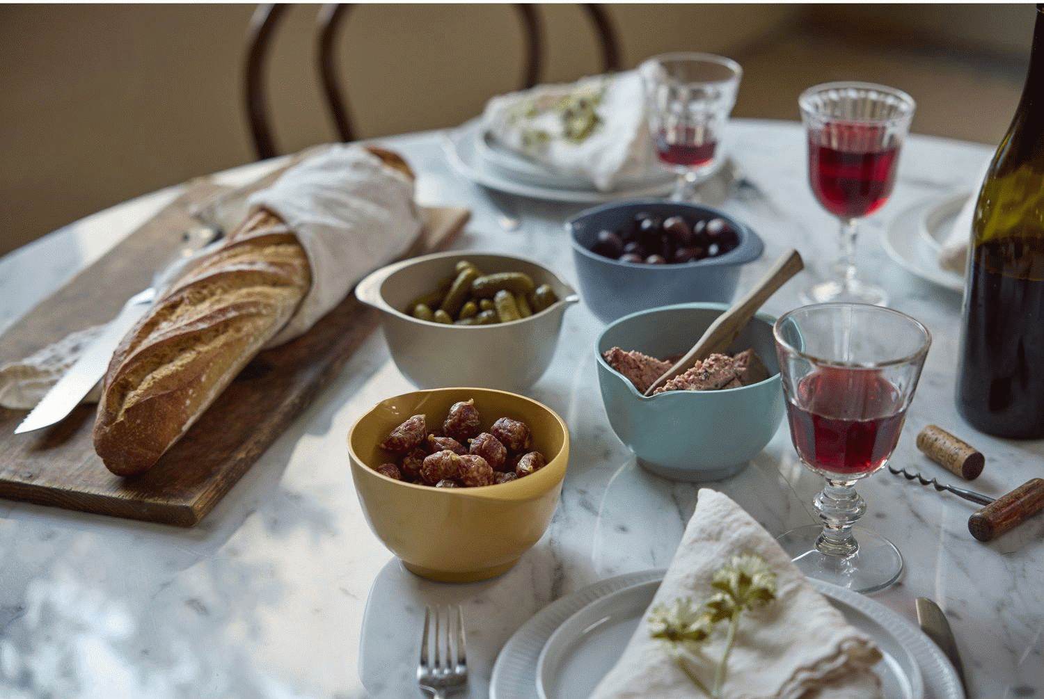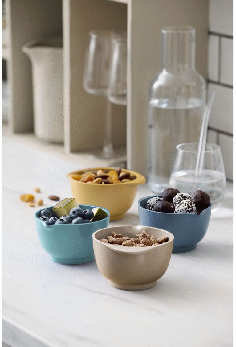 Størrelsen på 0,5 liter er perfekt til mindre portioner, dressinger, marinader eller til at forberede ingredienser før madlavning. De fire forskellige farver gør det nemt at organisere dit køkken og tilføjer samtidig et farverigt element til både arbejdsflade og middagsbord.
